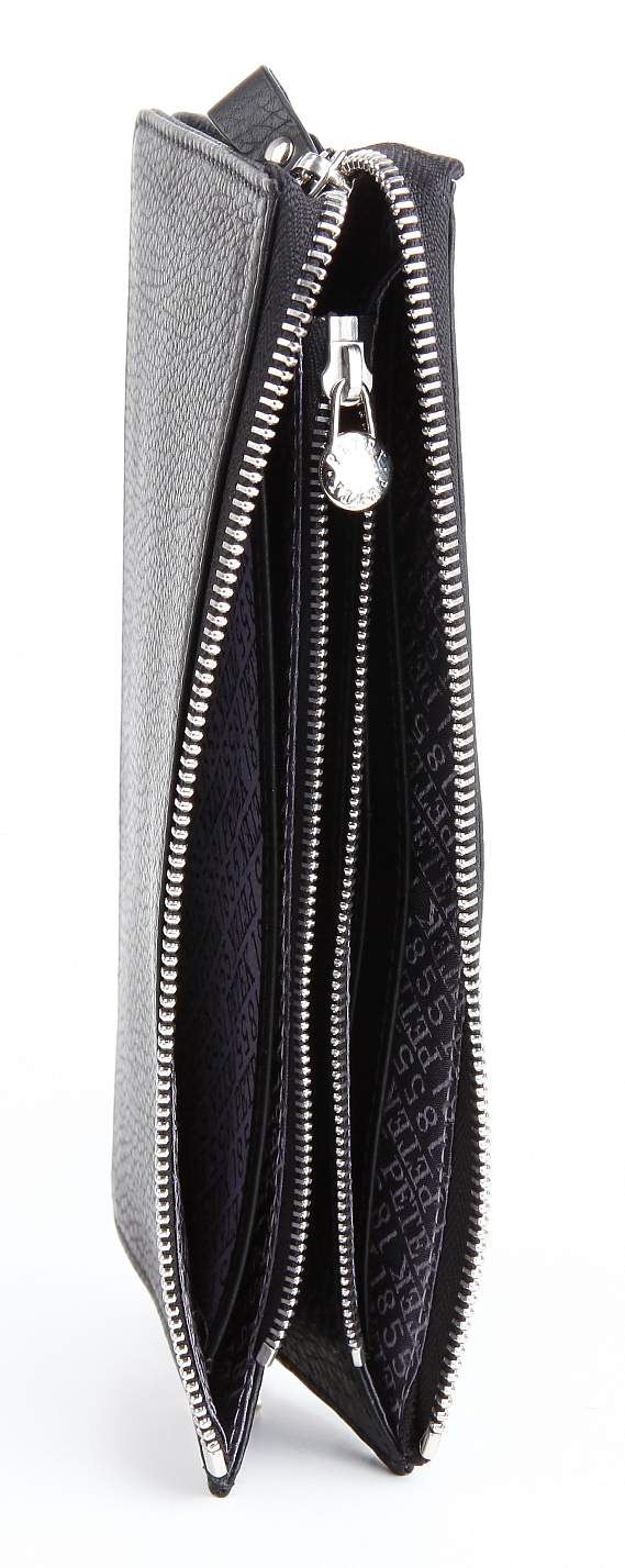 Мужской клатч из натуральной телячьей кожи. Функциональный аксессуар, который заменит Вам портмоне, ключницу. В нем же Вы сможете носить мобильный телефон. Клатч закрывается на молнию. Внутри данной модели предусмотрены два основных отделения. Они разделены между собой дополнительным отделениям, закрывающимся на молнию. Имеются шестнадцать прорезных карманов для кредитных и визитных карточек, по восемь на каждой стороне клатча. На внешней стенке расположен карман на молнии. В комплекте предусмотрен съемный ремень на запястье, пристегивающийся карабином. Характеристики изделия: Основные отделения – 2 Дополнительное отделение на молнии – 1 Карман на молнии – 1 Отделения для карточек – 16