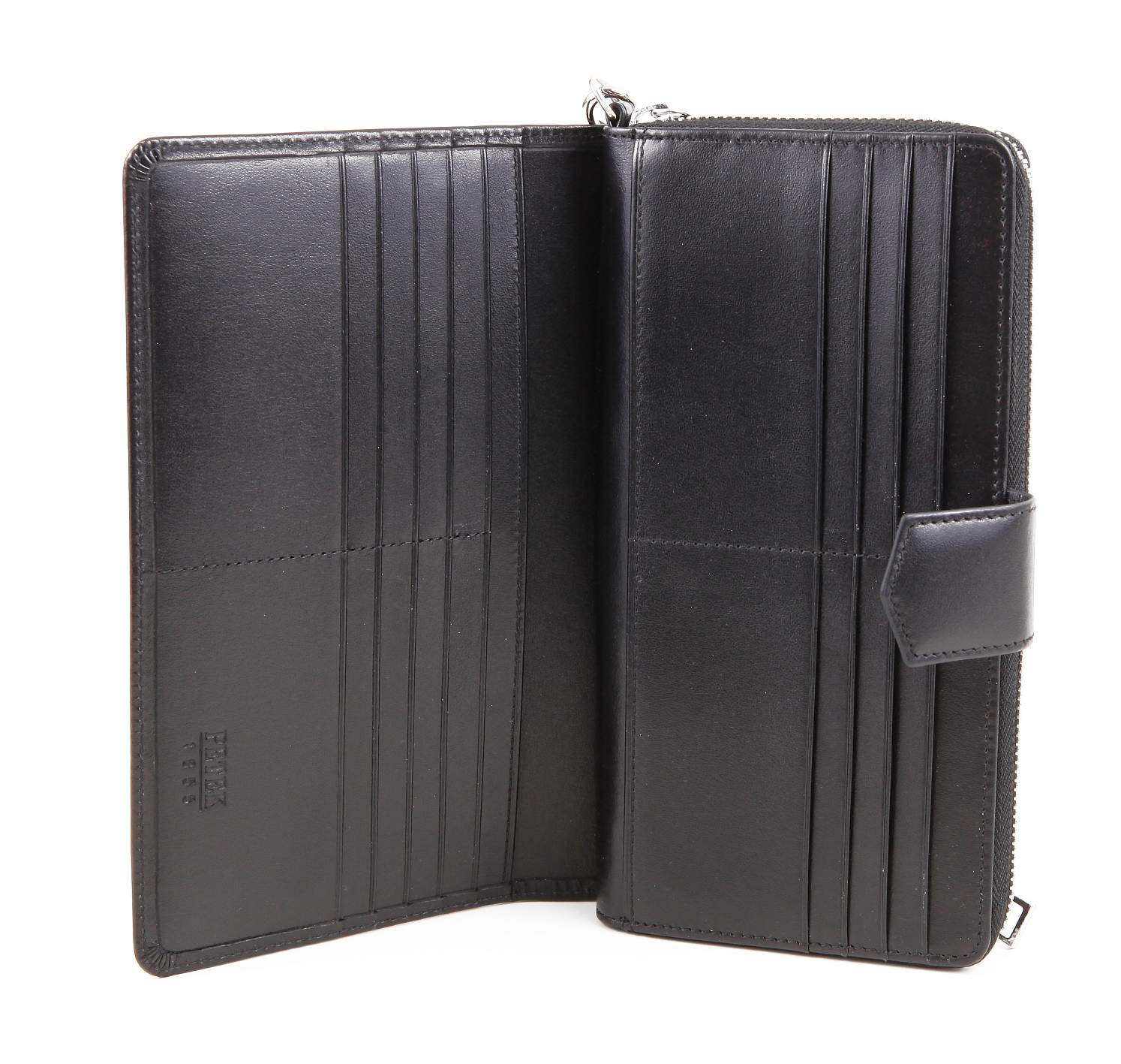 Портмоне-клатч Petek выполнено из натуральной кожи. Основное отделение закрывается на круговую молнию. Дополнительная откидная часть фиксируется кнопкой. Внутри портмоне имеет два отделения, разделенных молнией, и многофункциональный боковой карман. Боковой отсек содержит множество отделений для визиток, пластиковых карт и документов. Сзади портмоне имеется дополнительный карман на молнии. Дополнительно имеется ремешок на запястье для удобства ношения.