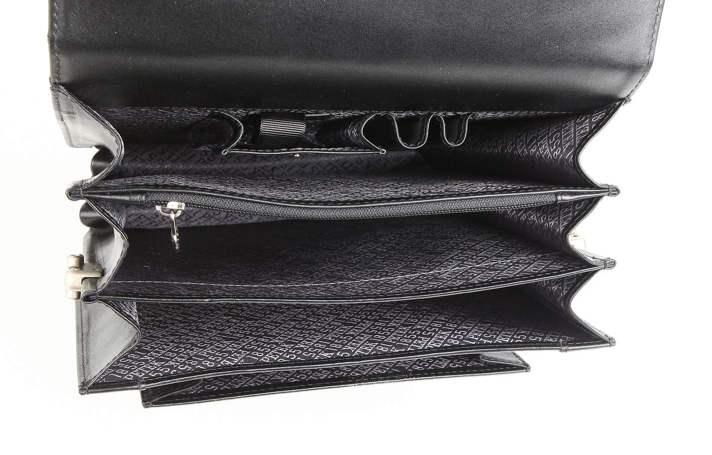 Планшет. Закрывается на кодовый замок. Внутри: три больших отдела (между вторым и третьим отделом - отделение на молнии); на задней стенке третьего отдела - объемный карман. Съемный плечевой ремень (на карабинах).