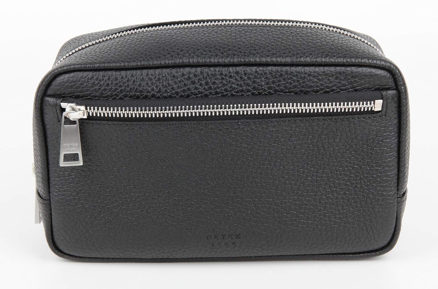 Стильный несессер из натуральной телячьей кожи с отсеком на молнии снаружи, внутри есть сетчатый карман, на непромокаемой подкладке.
