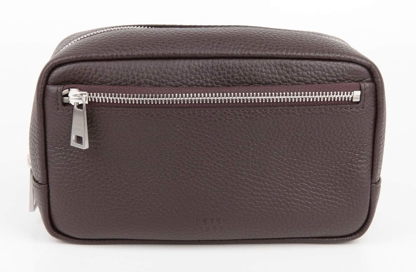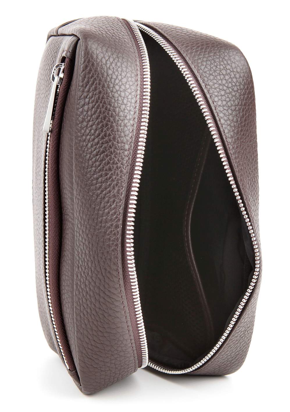 Стильный несессер из натуральной телячьей кожи с отсеком на молнии снаружи, внутри есть сетчатый карман, на непромокаемой подкладке.