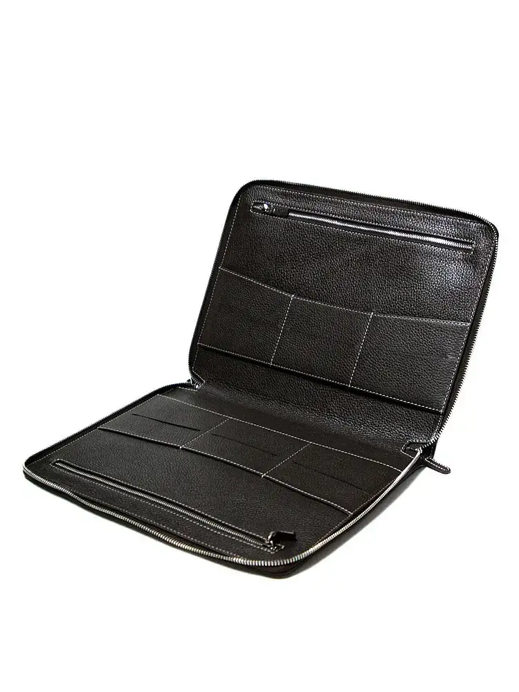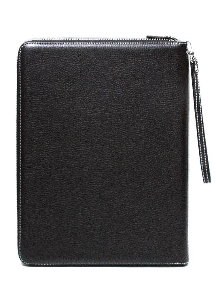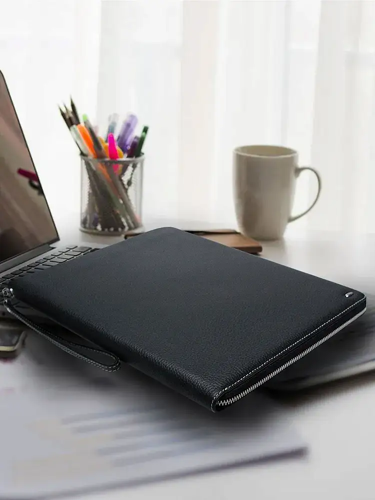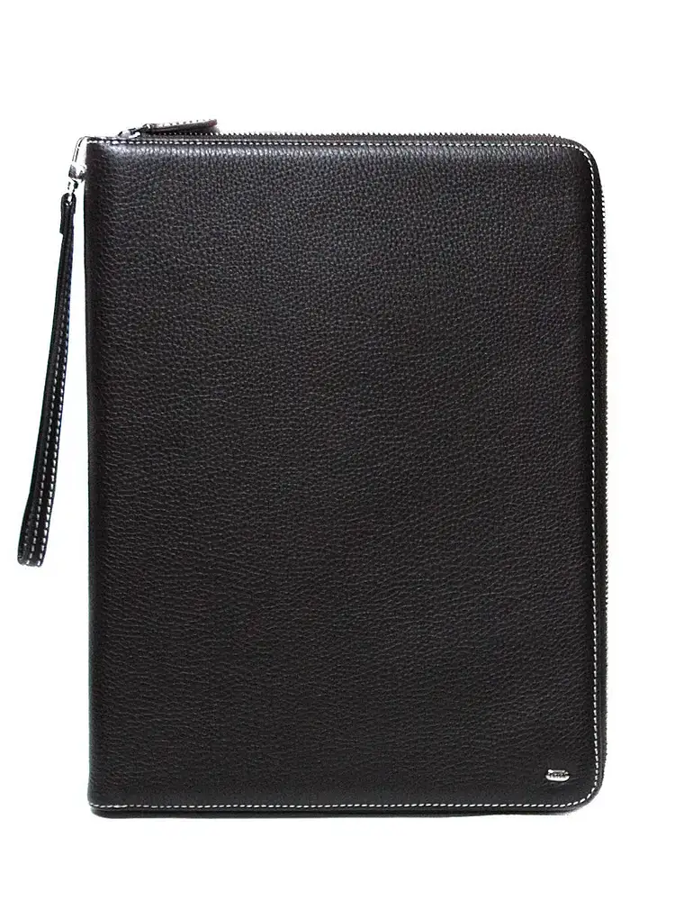 Папка закрывается на молнию, что обеспечивает надежное хранение документов и предотвращает их потерю. Съемный ремешок позволяет носить папку на плече или через плечо, делая ее удобной для использования в повседневной жизни.