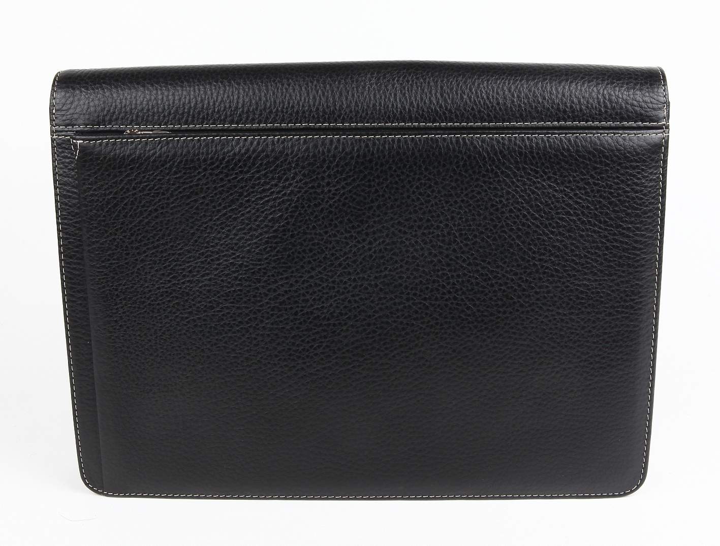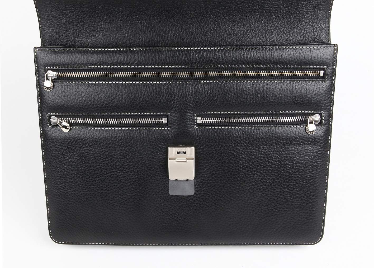 Современная, компактная папка для документов из натуральной кожи. Солидный аксессуар для деловых людей. Внутри имеется одно большое отделение, карман для бумаг, отделение на молнии, карман для визиток.
