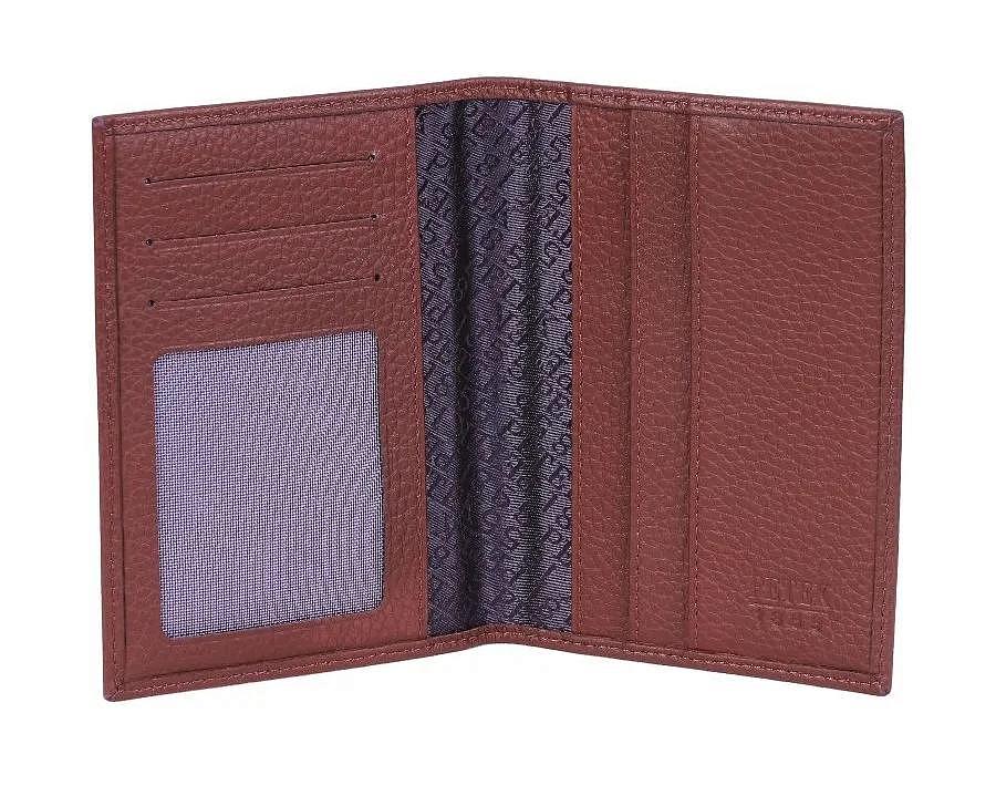 Обложка для паспорта из натуральной кожи имеет три отделения для пластиковых карт с левой стороны и два кармана для других документов с правой. Также предусмотрено отделение с окошком для СНИЛС нового образца и водительского удостоверения. Эта обложка подходит для хранения всех видов документов.