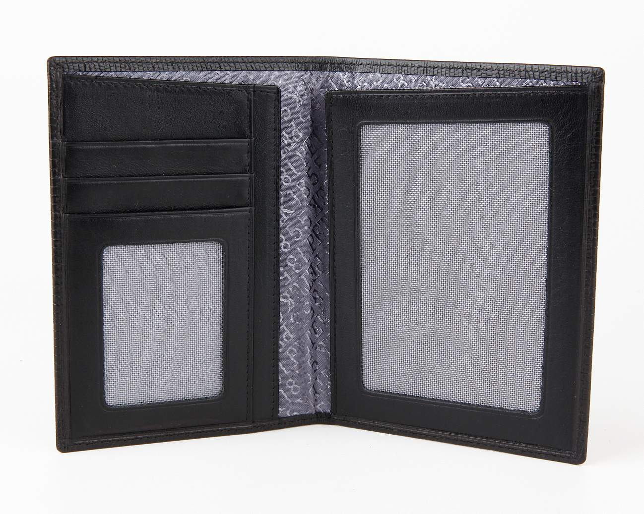 Паспорт вкладывается сверху в раскрытом виде. В обложке находятся 3 отделения для различных карточек, одно из них с сеточкой, отделение для прав старого образца или ID карты, а также в ней размещен внутренний карман. Упакована обложка в фирменную коробку с логотипом Petek 1855.
