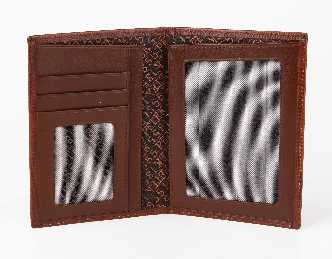 Паспорт вкладывается сверху в раскрытом виде. В обложке находятся 3 отделения для различных карточек, одно из них с сеточкой, отделение для прав старого образца или ID карты, а также в ней размещен внутренний карман. Упакована обложка в фирменную коробку с логотипом Petek 1855.