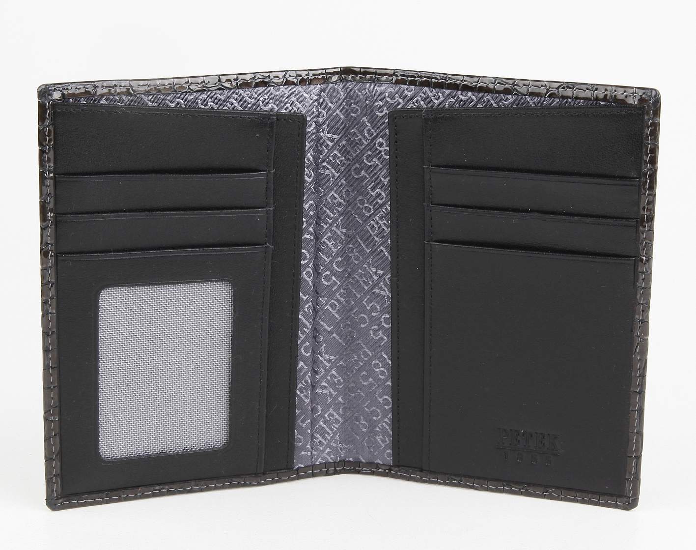 Паспорт вкладывается сверху в раскрытом виде. В обложке находятся 3 отделения для различных карточек, одно из них с сеточкой, отделение для прав старого образца или ID карты, а также в ней размещен внутренний карман. Упакована обложка в фирменную коробку с логотипом Petek 1855.