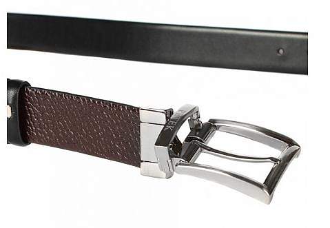 Изделие оснащено реверсивной металлической пряжкой, которая легко и быстро зафиксирует ремень и отрегулирует его длину.