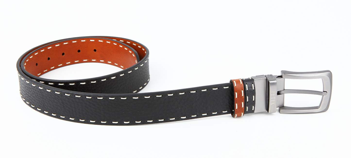 Мужской кожаный ремень фирмы Petek имеет двухстороннюю пряжку и ремень. Легким движение вы можете поменять цвет вашего ремня.