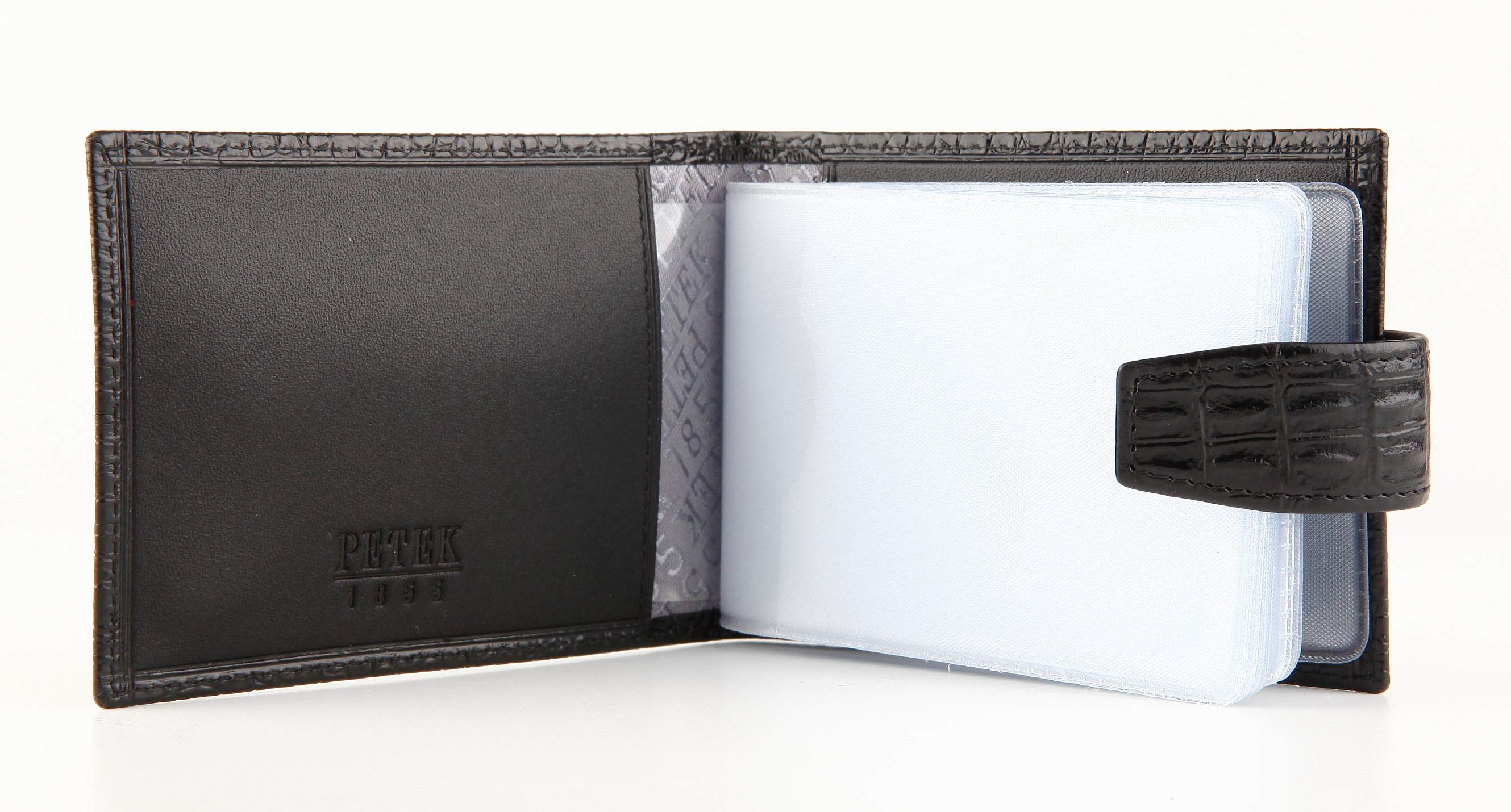 Визитница PETEK изготовлена из высококачественной натуральной кожи и отличается утонченным, стильным дизайном. Этот практичный аксессуар оснащен кнопкой для надежного закрытия. Визитницу можно открыть горизонтально, внутри находится десять прозрачных, прочных файлов для визиток. Блок с файлами можно извлечь из кожаной обложки, что очень удобно при использовании. Представленная модель визитницы идеально подойдет для хранения до десяти визитных карт при одностороннем расположении и до двадцати при двустороннем.