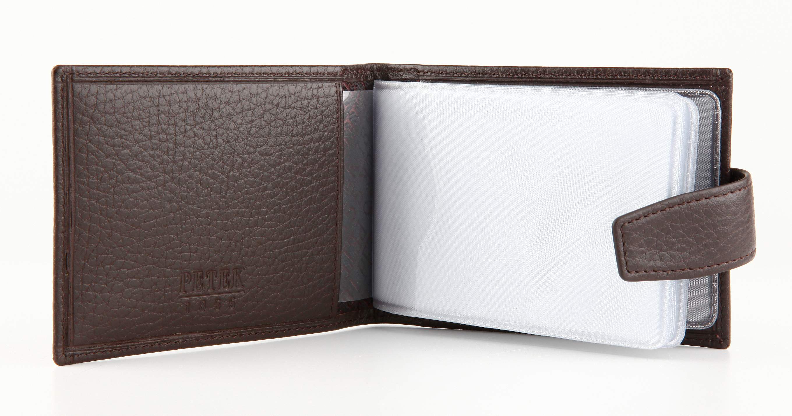 Визитница PETEK изготовлена из высококачественной натуральной кожи и отличается утонченным, стильным дизайном. Этот практичный аксессуар оснащен кнопкой для надежного закрытия. Визитницу можно открыть горизонтально, внутри находится десять прозрачных, прочных файлов для визиток. Блок с файлами можно извлечь из кожаной обложки, что очень удобно при использовании. Представленная модель визитницы идеально подойдет для хранения до десяти визитных карт при одностороннем расположении и до двадцати при двустороннем.
