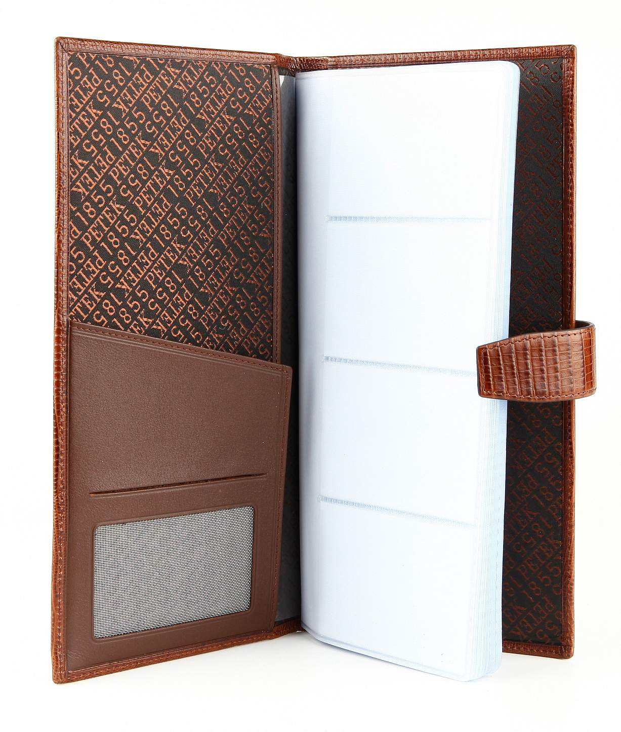 Настольная визитница из натуральной кожи высокого качества. Внутри имеется блок для визиток из 20 плотных пластиковых файлов по 4 отделения. Блок легко вынимается из кожаной обложки. При двустороннем размещении в визитницу помещается 160 карточек. На кожаной обложке внутри имеется дополнительный кармашек и уголок для бумаг.