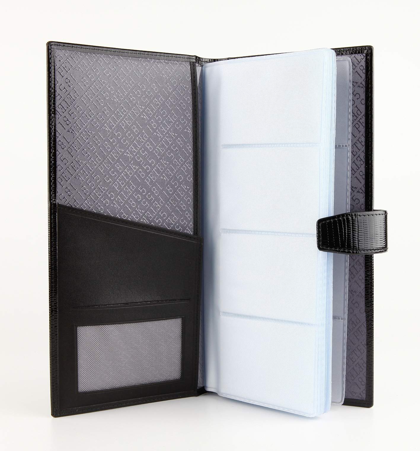Настольная визитница из натуральной кожи высокого качества. Внутри имеется блок для визиток из 20 плотных пластиковых файлов по 4 отделения. Блок легко вынимается из кожаной обложки. При двустороннем размещении в визитницу помещается 160 карточек. На кожаной обложке внутри имеется дополнительный кармашек и уголок для бумаг.