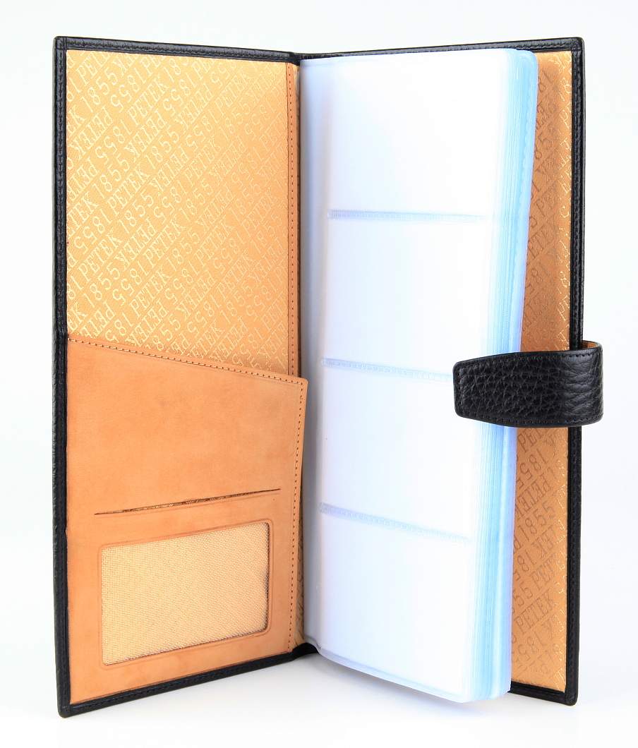 Настольная визитница из натуральной кожи высокого качества. Внутри имеется блок для визиток из 20 плотных пластиковых файлов по 4 отделения. Блок легко вынимается из кожаной обложки. При двустороннем размещении в визитницу помещается 160 карточек. На кожаной обложке внутри имеется дополнительный кармашек и уголок для бумаг.