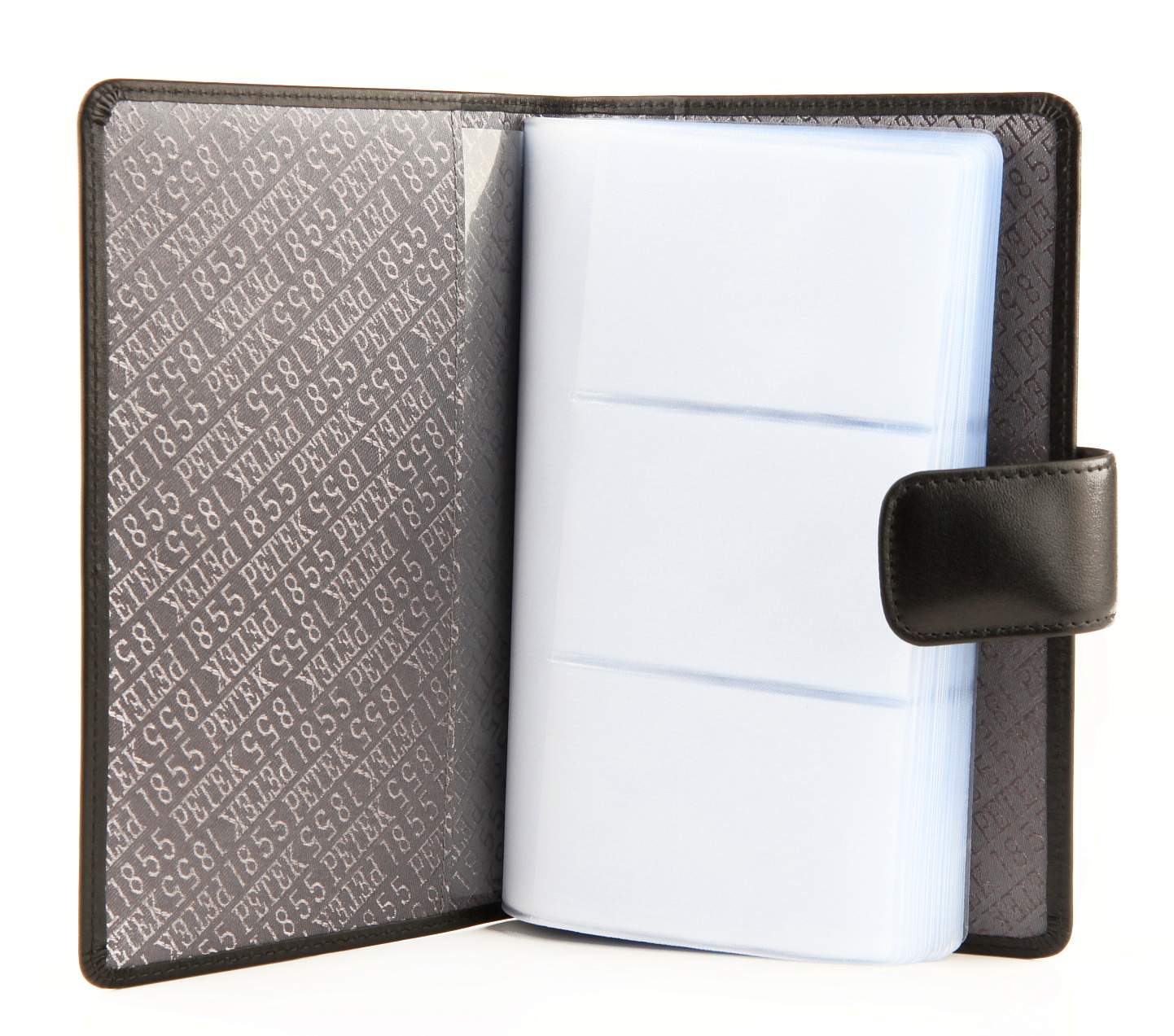 Стильная классическая визитница из натуральной кожи, застегивается на кнопку. Внутри имеются двадцать файлов из прочного пластика. В каждом файле помещается по 3 визитные карточки с одной стороны. Максимальное количество визиток - 120
