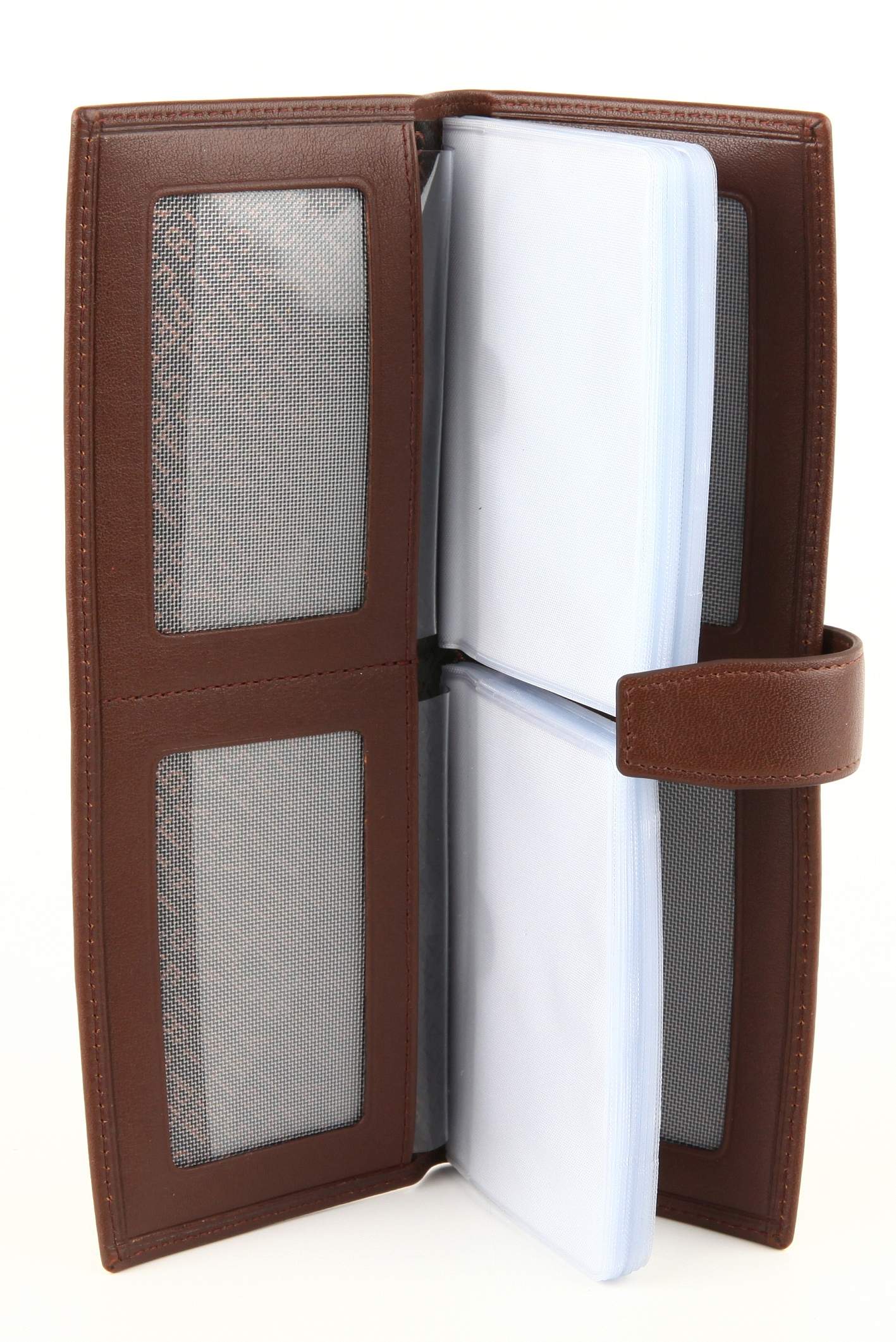 Удобная компактная визитница Petek из натуральной кожи. В данной модели имеется восемьдесят отделений для визитных или дисконтных карточек, есть четыре окошка с прозрачной сеткой. Закрывается на кнопку.