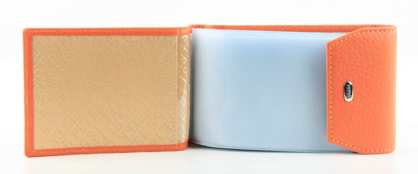 Закрывается кожаным хлястиком на кнопке. Выполнена в виде кожаной книжечки, внутри которой 20 прочных прозрачных файлов для визиток или пластиковых карт. Удачное решение для того, чтобы хранить скидочные, кредитные и клубные карты упорядоченно, в одном месте.