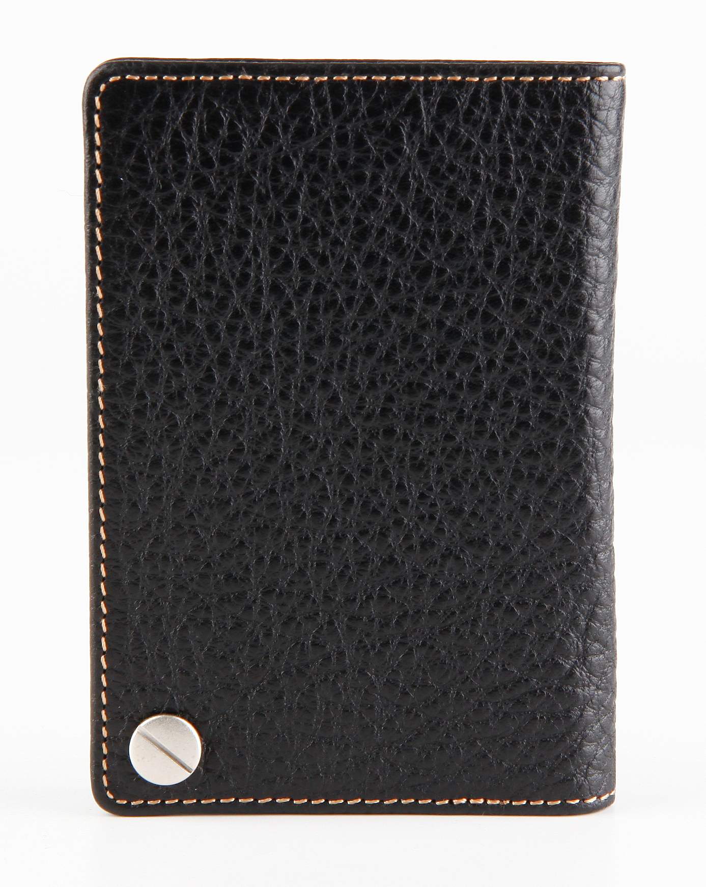 Элегантный, миниатюрный футляр для кредитных и визитных карт из натуральной кожи. Великолепный аксессуар на каждый день, который легко поместится даже в карман. Десять прочных файлов из прозрачного пластика скреплены в углу декоративной кнопкой и раскладываются как веер. Максимальное количество карточек - 20. На внешней поверхности имеется прорезной карман.