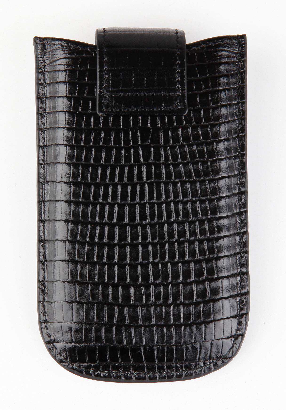Кожаная визитница Petek, выполнена в форме футляра. Закрывается хлястиком на кнопке.
