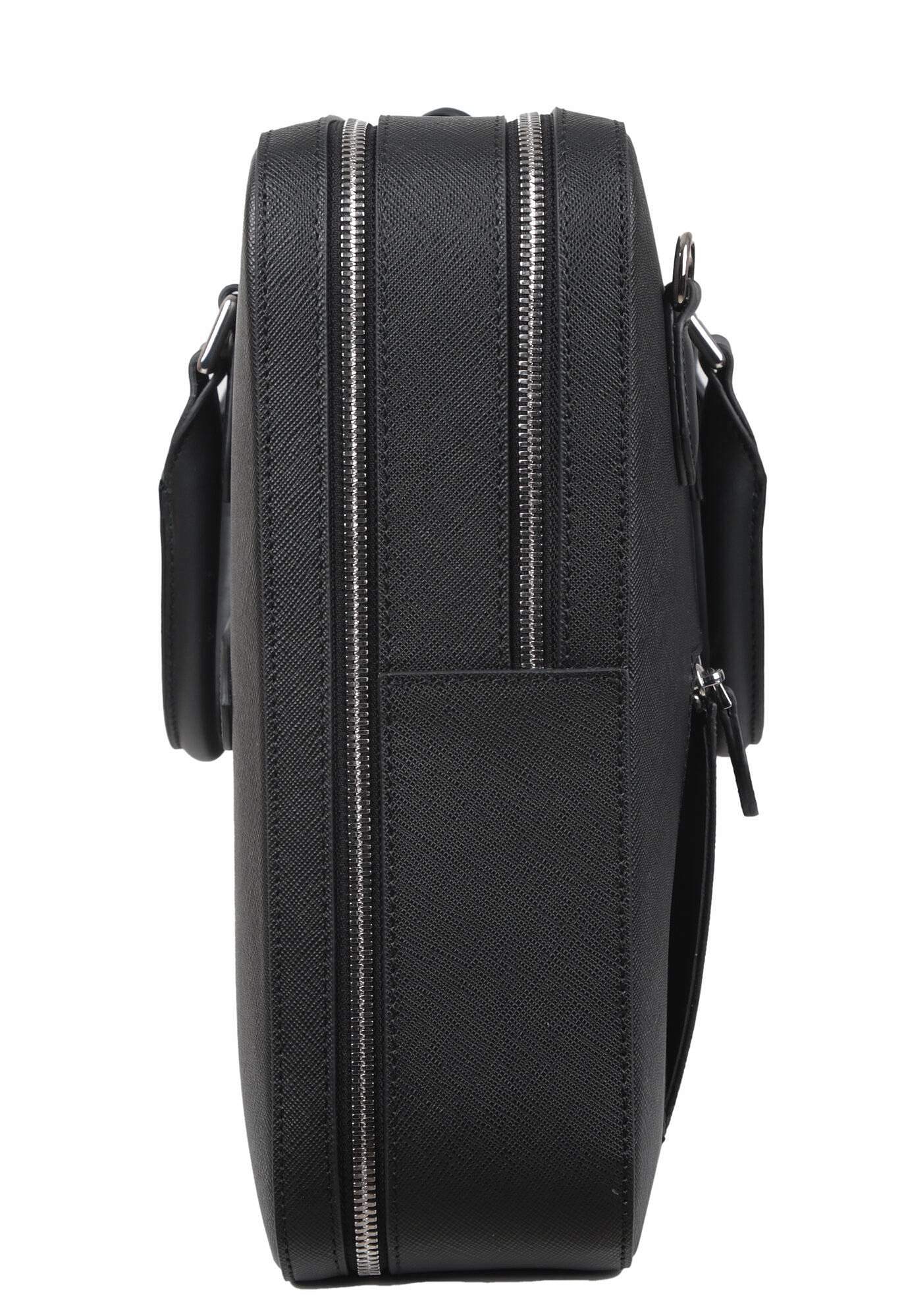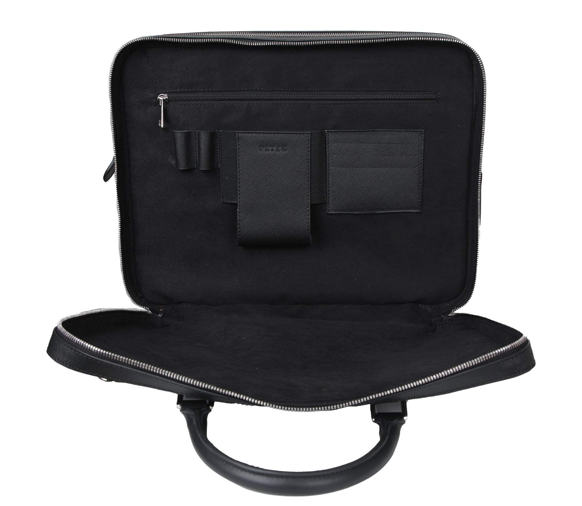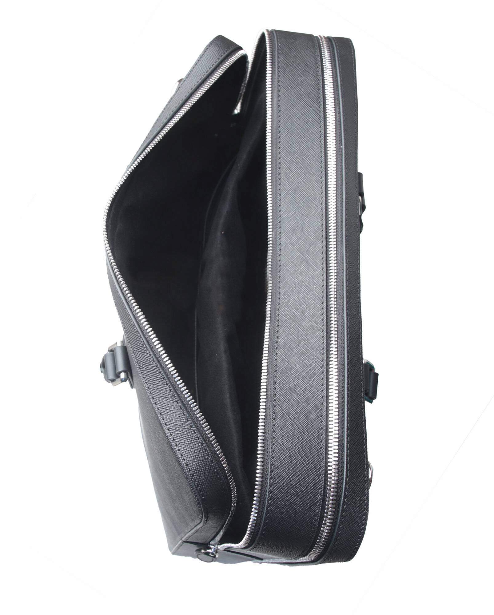 Переднее отделение разделено на две секции и имеет два кармана на разделительном ребре для хранения ключей, документов и других личных вещей формата А4. Заднее отделение открывается до самого низа с помощью молнии и включает одно общее отделение, отделение на молнии, а также отсеки для ручек, мобильного телефона, визиток и кредитных карт (всего пять штук).