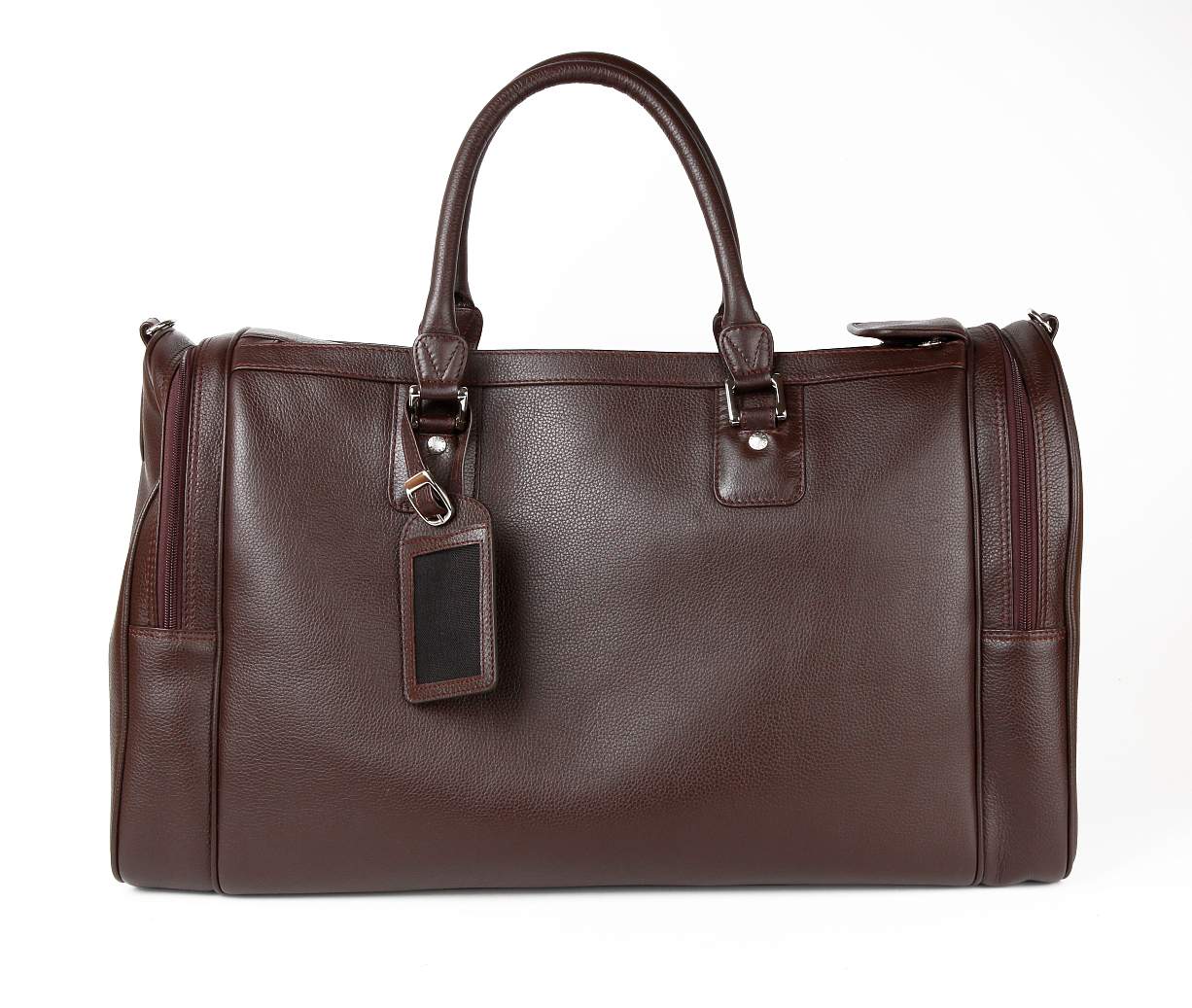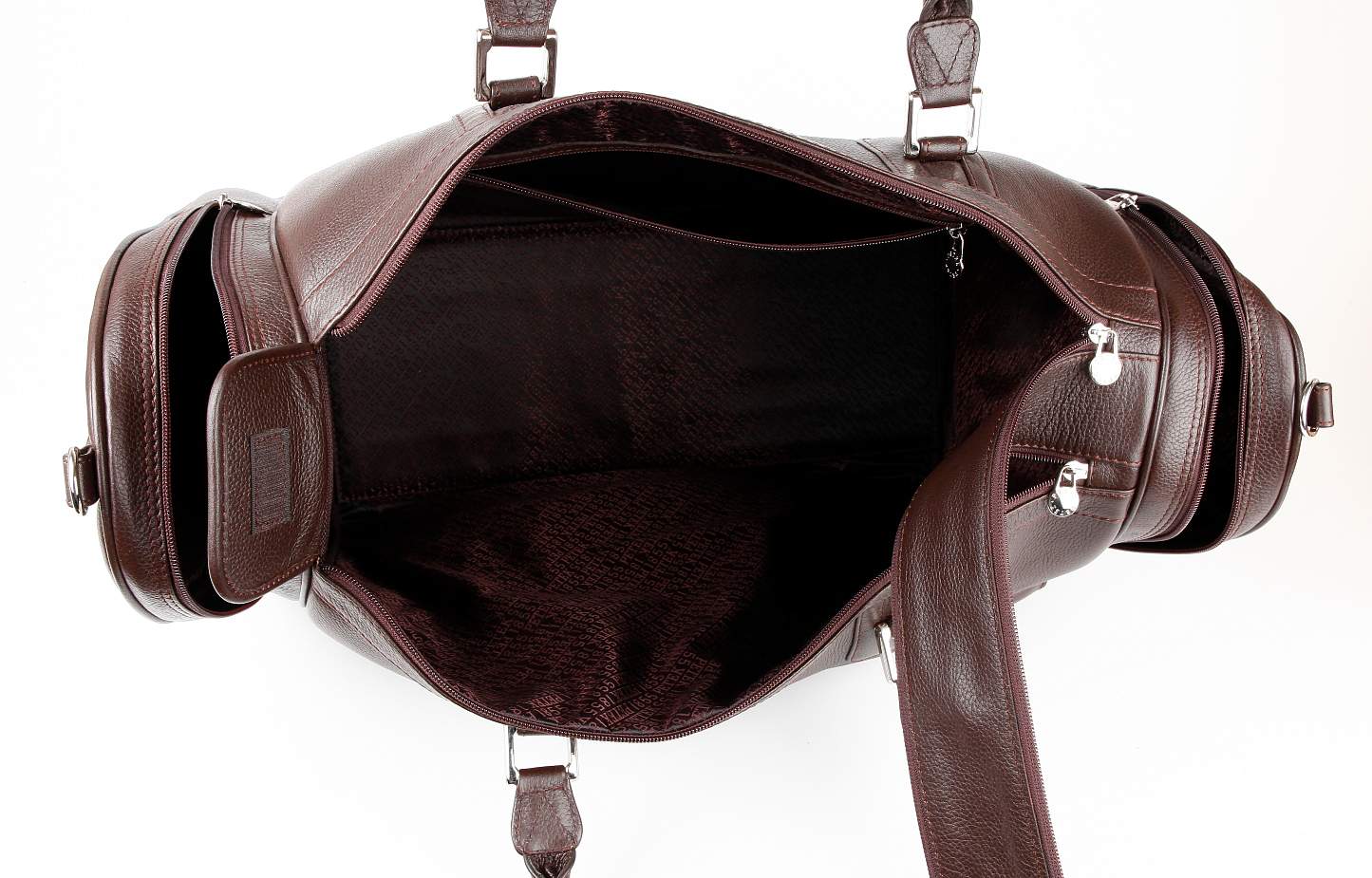 Дорожная кожаная сумка с наплечным ремнём. Вместительная модель без излишеств.