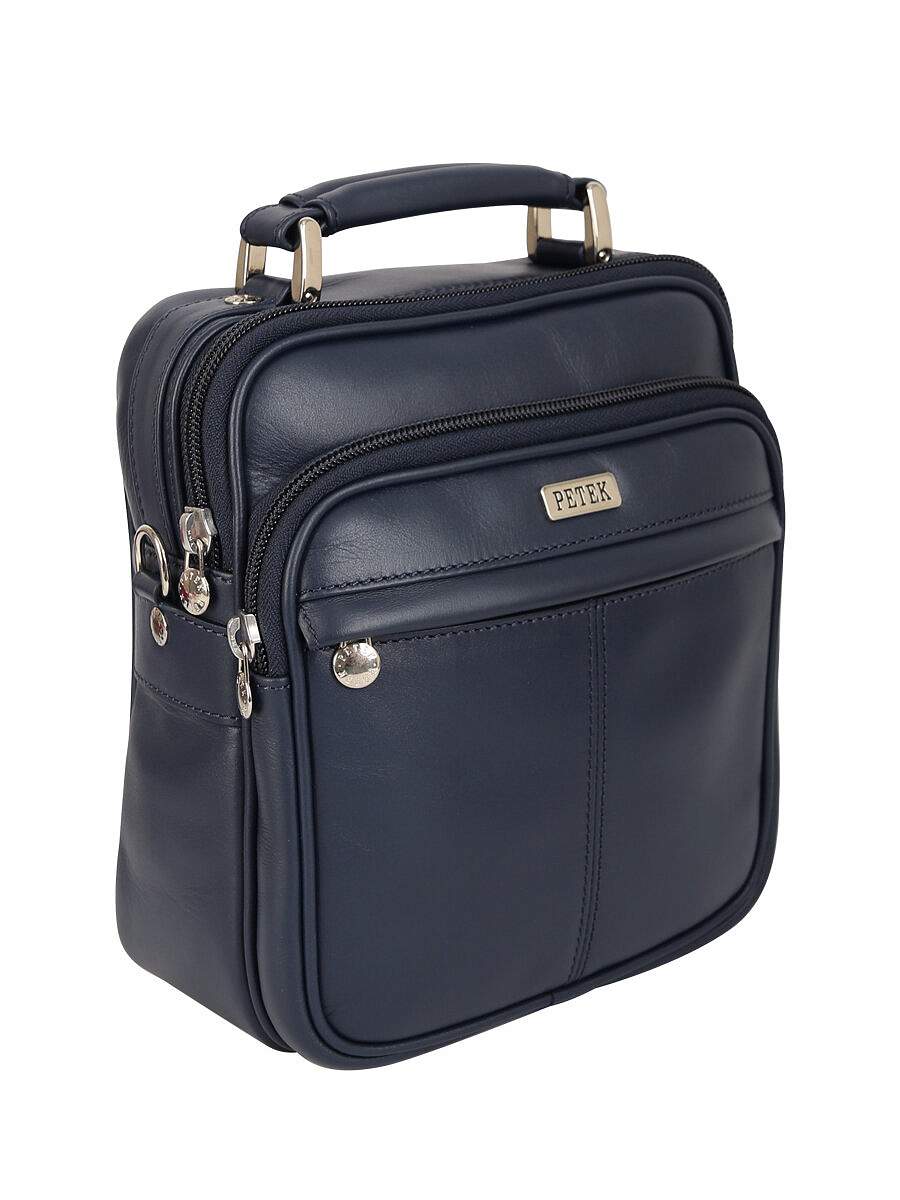 Сумка Petek 1855 выполнена из натуральной телячьей кожи. Она оснащена двумя внешними карманами и основным отделением на молнии. Основное отделение содержит одно отделение и дополнительный карман на молнии на задней стороне сумки. Сумку можно носить с помощью ручки сверху и плечевого ремня, который закреплён по бокам.