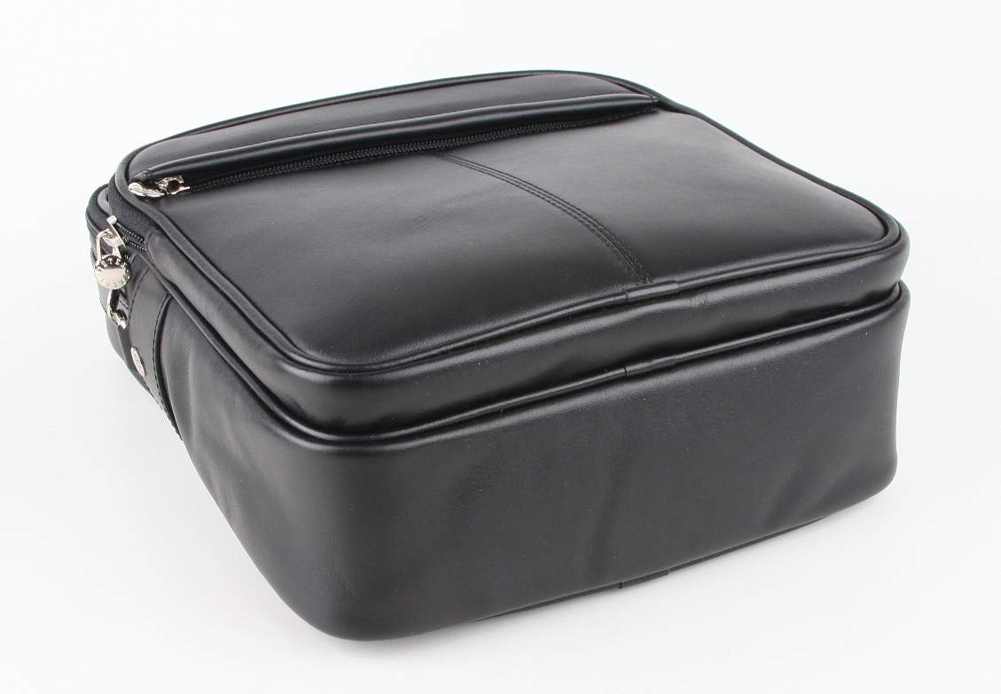 Мужская дорожная сумка Petek на плечевом ремне из натуральной кожи черного цвета с зернистой фактурой. Внутри: Один основной и три дополнительных кармана на молнии. В комплекте плечевой ремень.