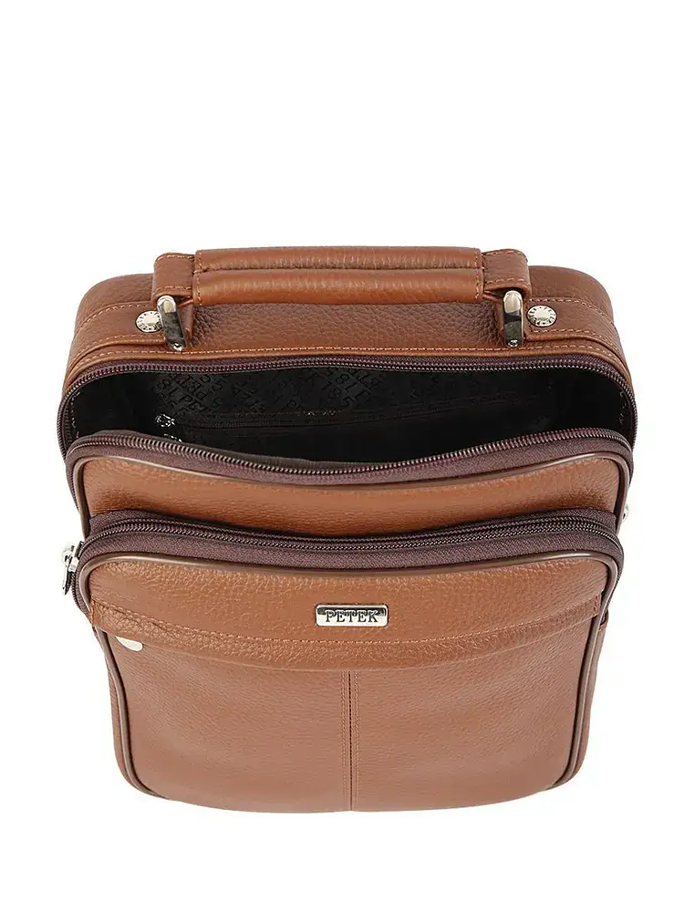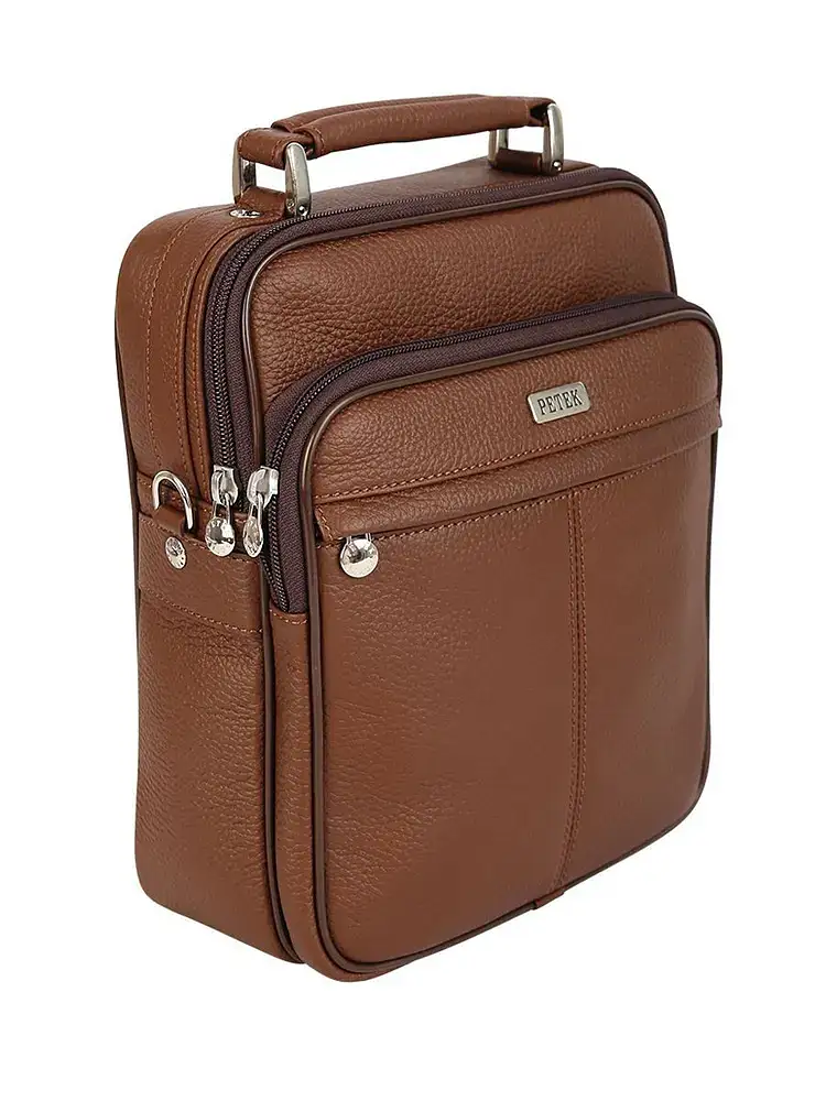 Мужская дорожная сумка Petek на плечевом ремне из натуральной кожи черного цвета с зернистой фактурой. Внутри: Один основной и три дополнительных кармана на молнии. В комплекте плечевой ремень.