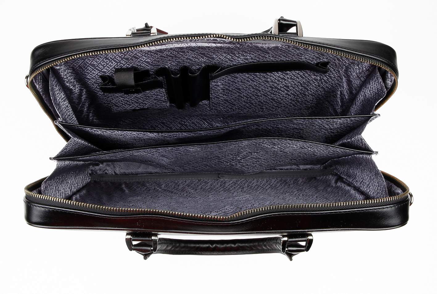 Эта элегантная и практичная модель из натуральной кожи предназначена для тех, кто следит за модой и желает выделиться из толпы.Внутри портфеля три удобных отделения для бумаг, а также специальный кармашек для мобильного телефона, закрывающийся хлястиком. Рядом - объемный карман для портмоне или небольшого органайзера, два держателя для ручек снабжены пластиковой вкладкой, чтобы не пачкать подкладку чернилами.На внешней стороне портфеля имеется отделение на молнии, в которое легко поместятся листы формата А4.К этой модели прилагается съемный кожаный наплечный ремень. Качественная фурнитура из легированной стали изготовлена в Швейцарии.Эта модель представлена в различных цветах и нескольких видах кожи.