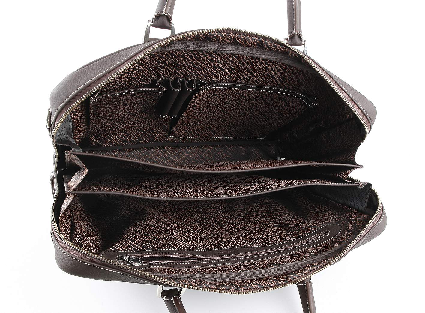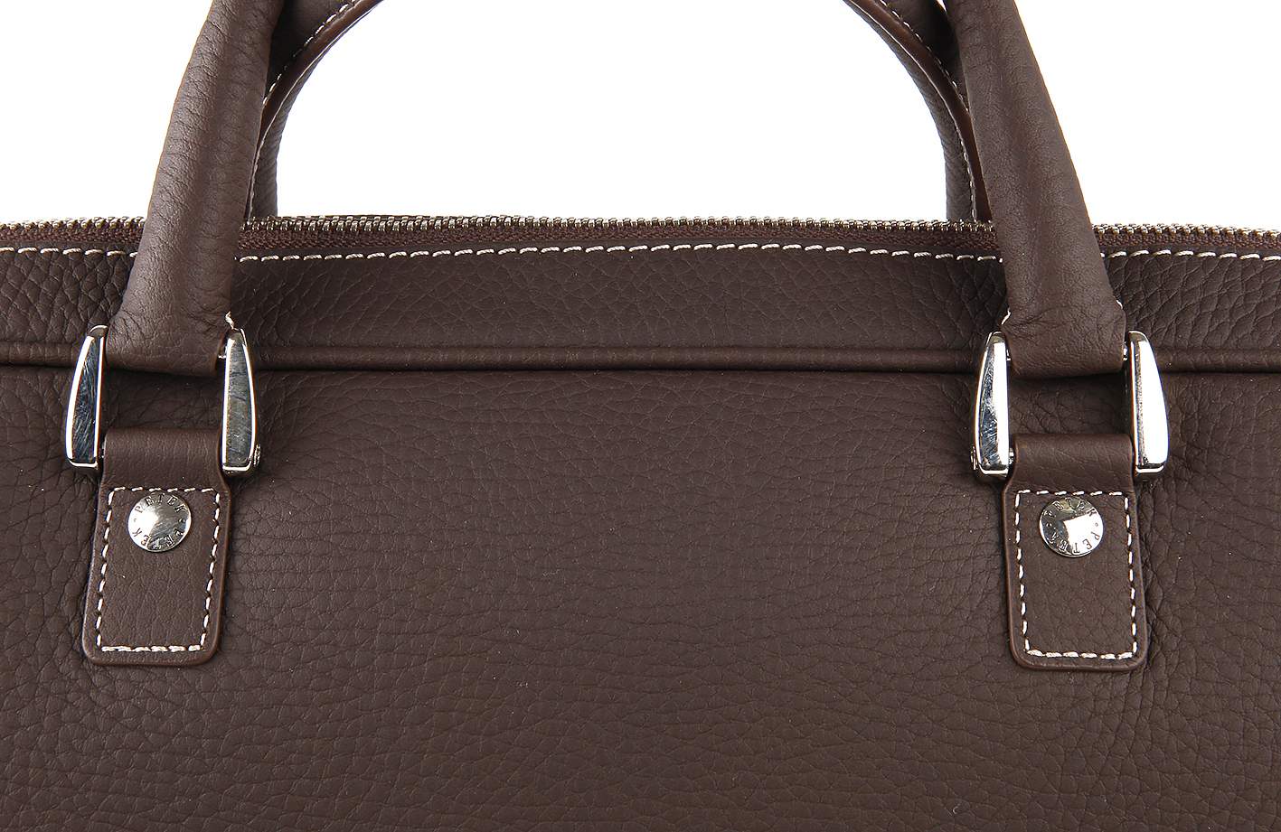 Эта элегантная и практичная модель из натуральной кожи предназначена для тех, кто следит за модой и желает выделиться из толпы.Внутри портфеля три удобных отделения для бумаг, а также специальный кармашек для мобильного телефона, закрывающийся хлястиком. Рядом - объемный карман для портмоне или небольшого органайзера, два держателя для ручек снабжены пластиковой вкладкой, чтобы не пачкать подкладку чернилами.На внешней стороне портфеля имеется отделение на молнии, в которое легко поместятся листы формата А4.К этой модели прилагается съемный кожаный наплечный ремень. Качественная фурнитура из легированной стали изготовлена в Швейцарии.Эта модель представлена в различных цветах и нескольких видах кожи.