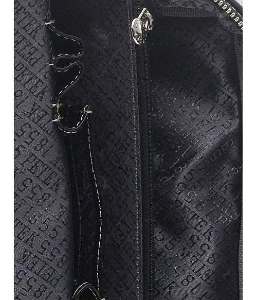 Два отделения разделенные средником на молнии, карман для телефона и два крепления для письменных принадлежностей.