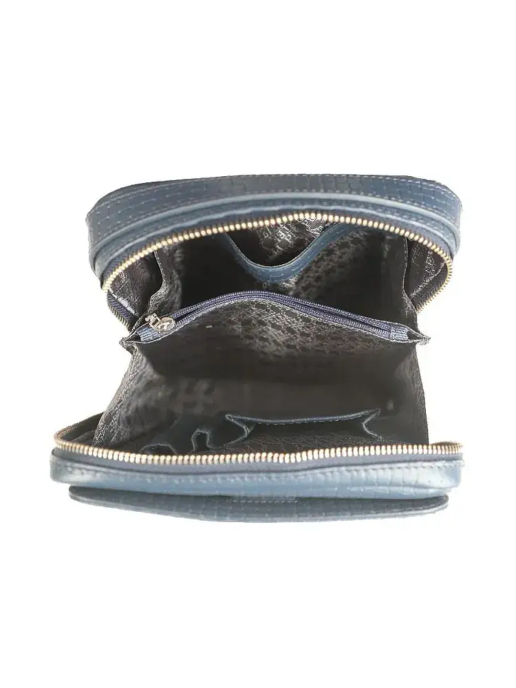 Два отделения разделенные средником на молнии, карман для телефона и два крепления для письменных принадлежностей.
