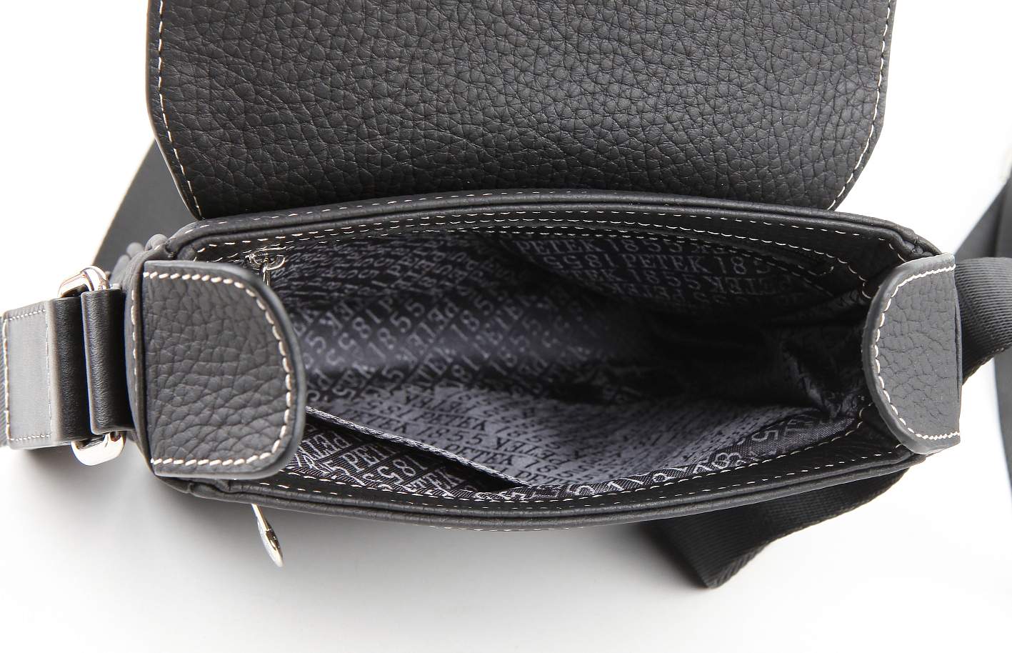 Мужская сумка Petek изготовлена из 100% натуральной кожи. Эта модель носится на плече благодаря регулируемому плечевому ремню из кожи. Внутри сумки одно основное отделение, в котором есть два кармана на молнии для мелочей. Широкий плечевой ремень обеспечивает комфорт при ношении. Сумка закрывается с помощью магнитного клапана и молнии.