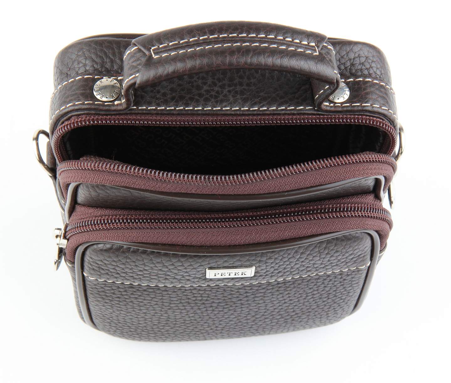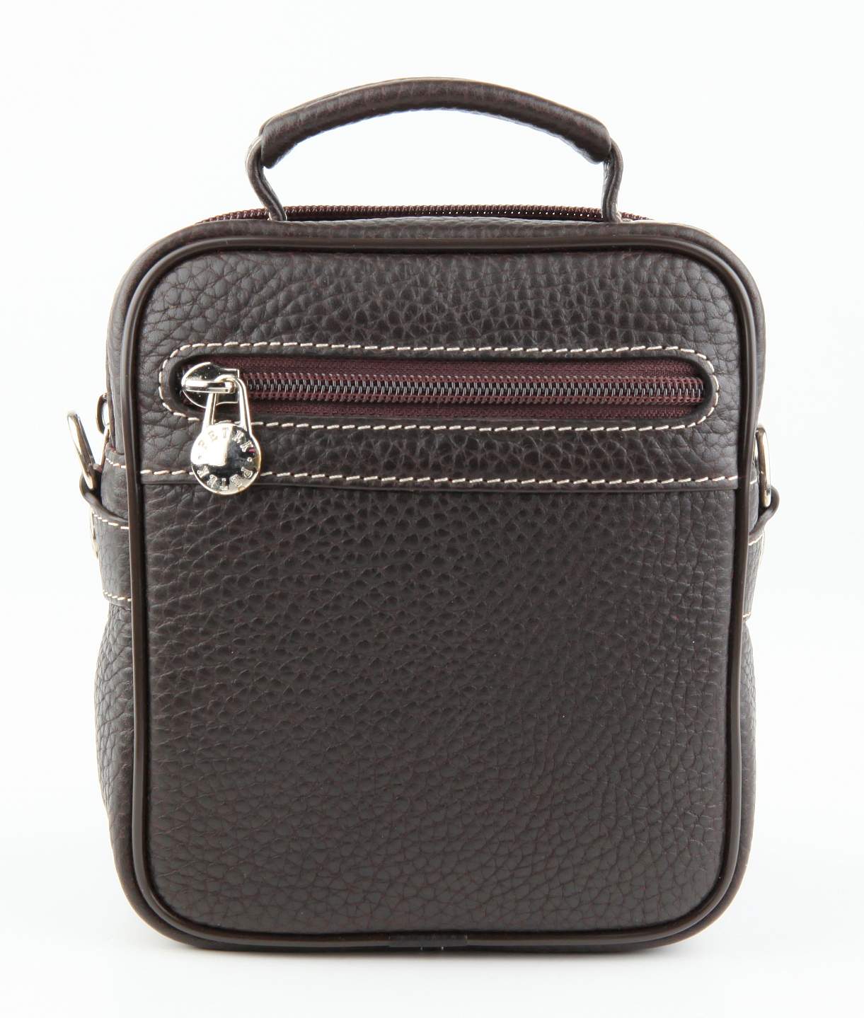 Мужская кожаная сумка Petek. Компактная элегантная модель на любой случай. Состоит из 2 отделений на молии. Сзади есть небольшой карман на молнии. Обладает удобной ручкой и съемным плечевым ремнём, пристегивающимся с помощью надежных карабинов.