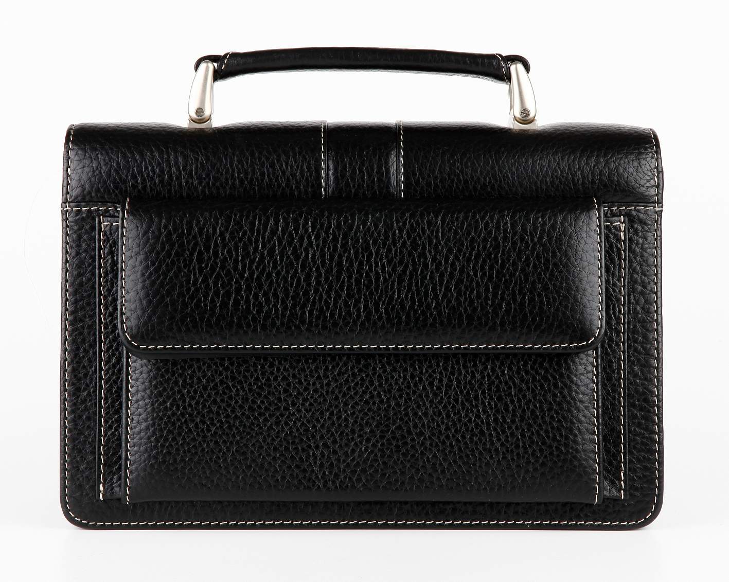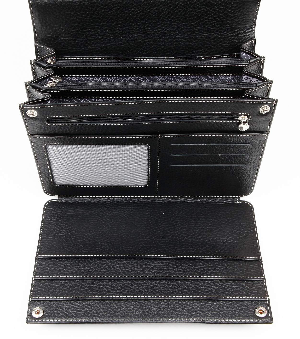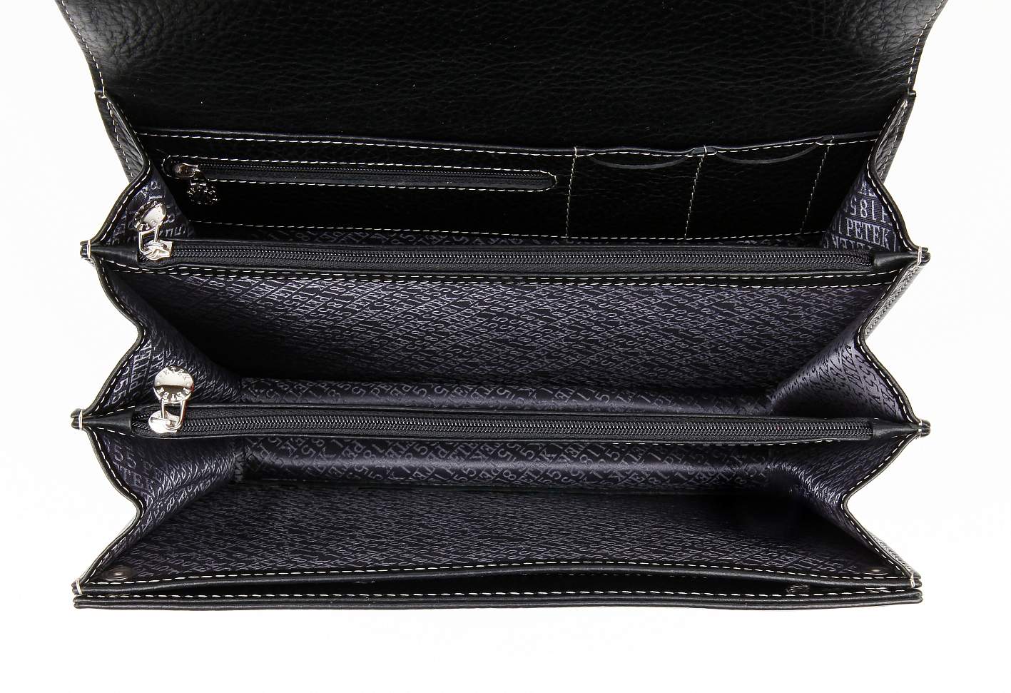 Мужская визитка Petek из натуральной кожи. Три отделения, два кармана на молнии, откидная планшетка (четыре кармана, отделение на молнии, три кармана для визиток). Сзади карман на кнопке.