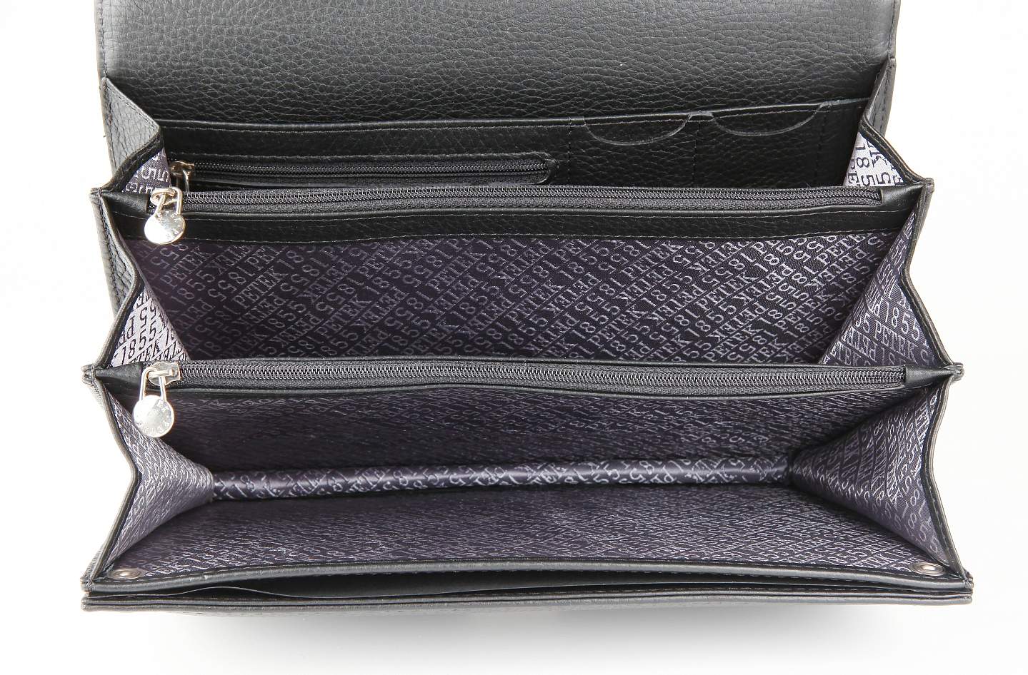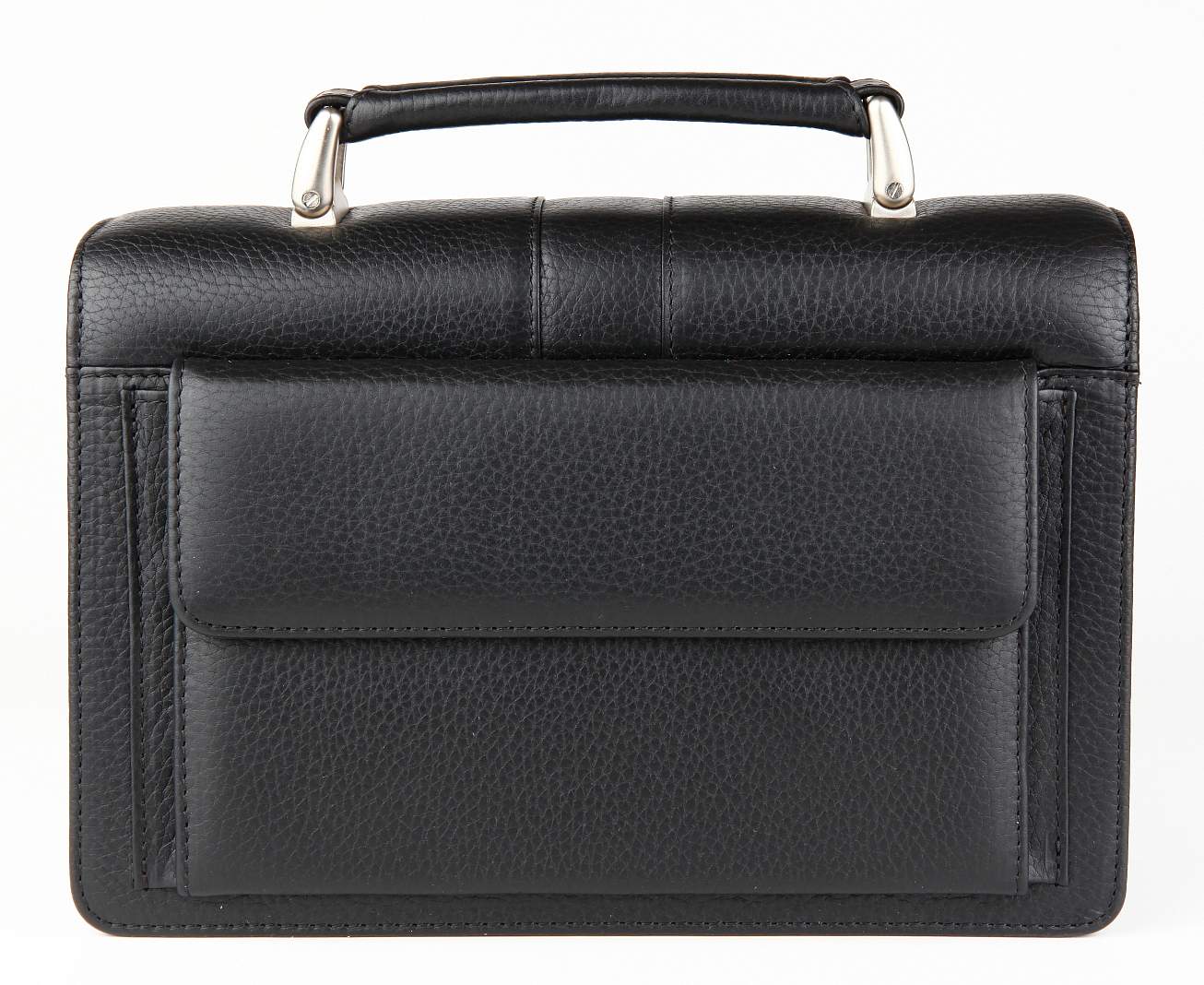Мужская барсетка из натуральной кожи Petek с тремя внутренними отделениями, которые закрываются общим клапаном с кодовым замком. Внутри имеются три отсека, разделенные карманами на молнии, один карман на молнии и два отсека для ручек. Снаружи, на лицевой стороне, под клапаном находится откидной отсек на кнопках с дополнительными карманами и отделениями для визитных карт и пластиковых карт. На обратной стороне расположен карман с клапаном, барсетка оснащена удобной кожаной ручкой для переноски.