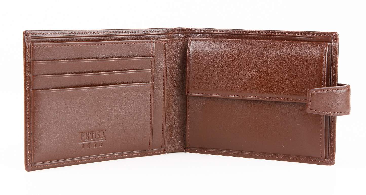 Портмоне Petek - это классический стильный и функциональный мужской аксессуар. Оно выполнено из высококачественной натуральной кожи, что обеспечивает долговечность и прочность изделия. Закрывается хлястиком на кнопке, что удобно и надежно. Внутри портмоне имеет 2 отделения для бумажных купюр, 3 отделения для пластиковых карточек или визиток, потайной карман и монетник на кнопке для хранения мелочи. Портмоне Petek станет прекрасным подарком для любого мужчины, который хочет иметь качественный и стильный аксессуар.