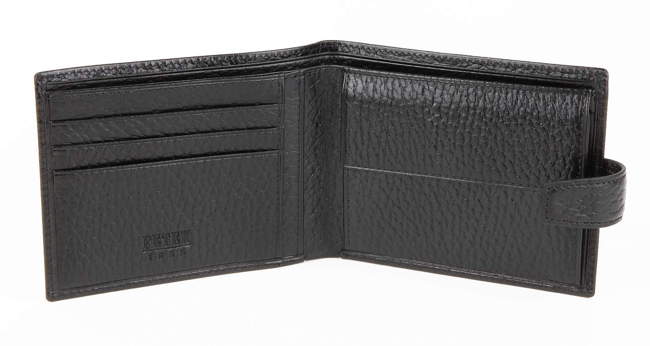 Портмоне Petek - это классический стильный и функциональный мужской аксессуар. Оно выполнено из высококачественной натуральной кожи, что обеспечивает долговечность и прочность изделия. Закрывается хлястиком на кнопке, что удобно и надежно. Внутри портмоне имеет 2 отделения для бумажных купюр, 3 отделения для пластиковых карточек или визиток, потайной карман и монетник на кнопке для хранения мелочи. Портмоне Petek станет прекрасным подарком для любого мужчины, который хочет иметь качественный и стильный аксессуар.