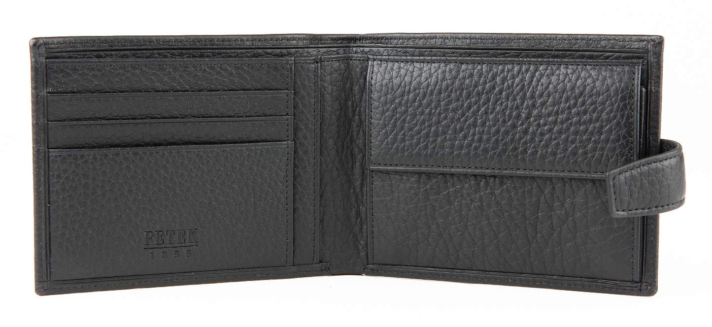 Портмоне Petek - это классический стильный и функциональный мужской аксессуар. Оно выполнено из высококачественной натуральной кожи, что обеспечивает долговечность и прочность изделия. Закрывается хлястиком на кнопке, что удобно и надежно. Внутри портмоне имеет 2 отделения для бумажных купюр, 3 отделения для пластиковых карточек или визиток, потайной карман и монетник на кнопке для хранения мелочи. Портмоне Petek станет прекрасным подарком для любого мужчины, который хочет иметь качественный и стильный аксессуар.