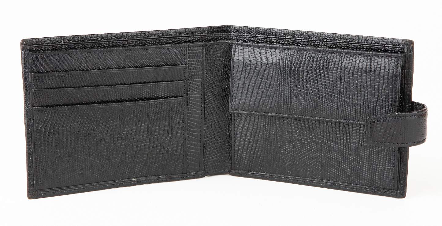 Стильное классическое портмоне из высококачественной натуральной кожи. Закрывается хлястиком на кнопке. Внутри: 2 отделения для купюр, 3 кармана для кредиток, отделение для мелочи.