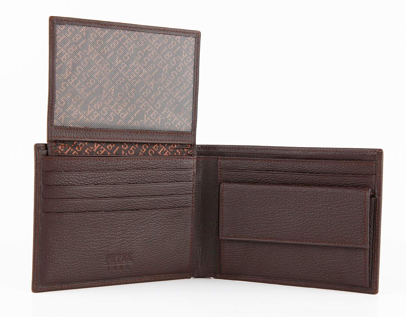 Портмоне Petek - это классическое и элегантное портмоне двойного сложения из высококачественной кожи. Оно имеет 2 отделения для банкнот, 4 кармана для визитных карточек или пластиковых карт, монетницу на кнопках, потайной карман и съёмное отделение для хранения документов с прозрачными отделениями. Портмоне будет отличным выбором для людей, ценящих стиль, удобство и качество.