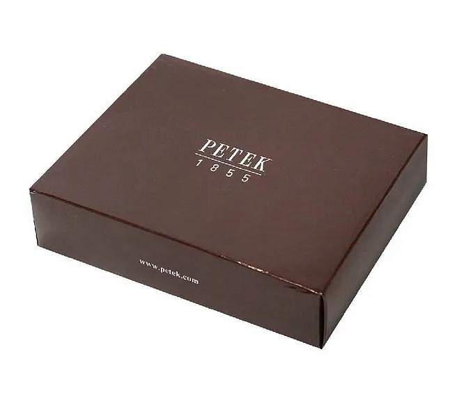 Портмоне Petek выполнено из натуральной кожи, что делает его долговечным и прочным. Внешняя сторона украшена металлической вставкой с логотипом фирмы-производителя, что добавляет элегантности и стиля. Портмоне имеет два отделения для банкнот, отделение для монет и кредитных карт. Это удобный и практичный аксессуар для хранения денег и банковских карт, который также может быть использован в качестве подарка для мужчины.