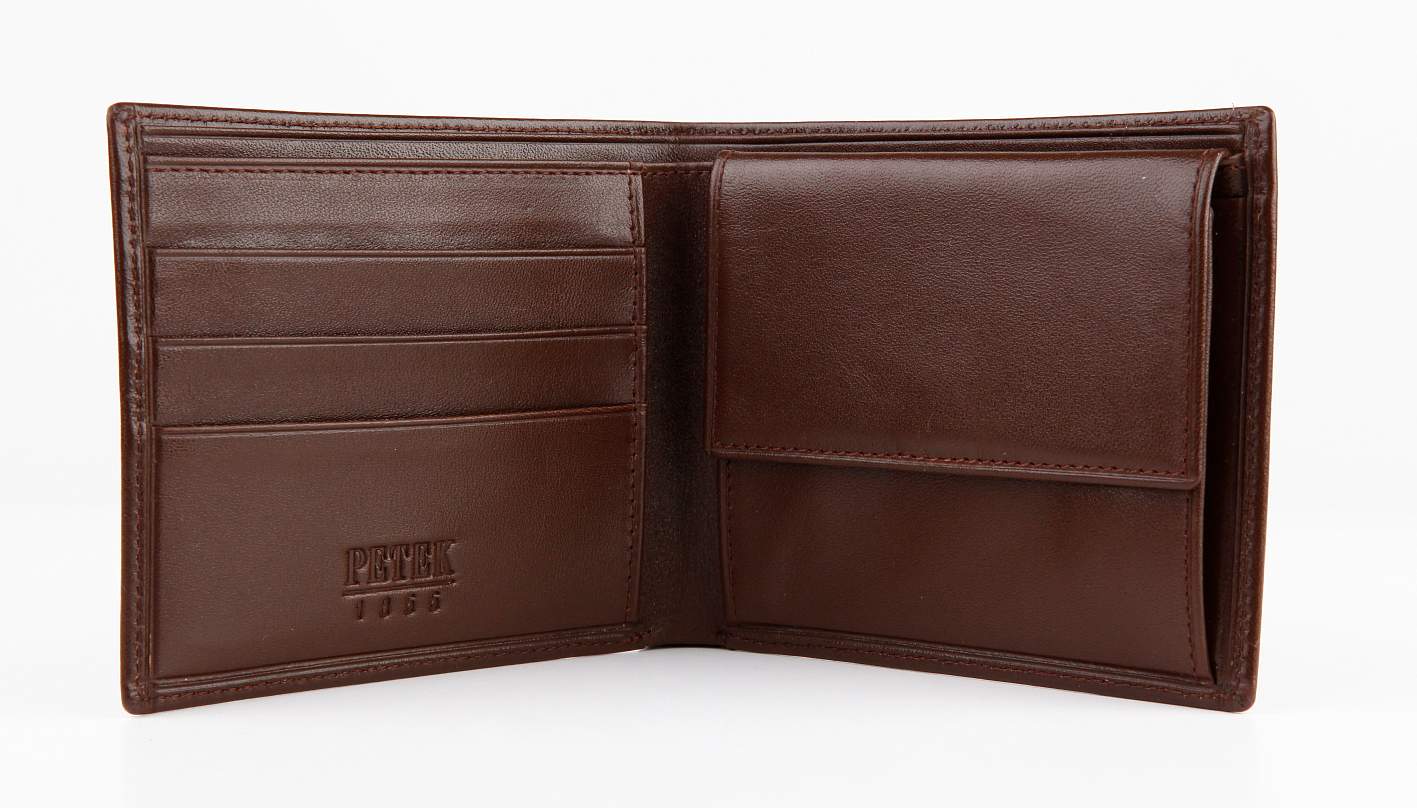Портмоне Petek - это классический мужской аксессуар, который станет незаменимым помощником в повседневной жизни. Оно выполнено из высококачественной натуральной кожи, что придает ему элегантный и стильный вид. Портмоне имеет двойное сложение, что позволяет удобно хранить деньги, пластиковые карты и монеты. Внутри есть 2 отделения для денег, 3 отсека для карт и монетница на кнопке, что делает его очень практичным и удобным в использовании.