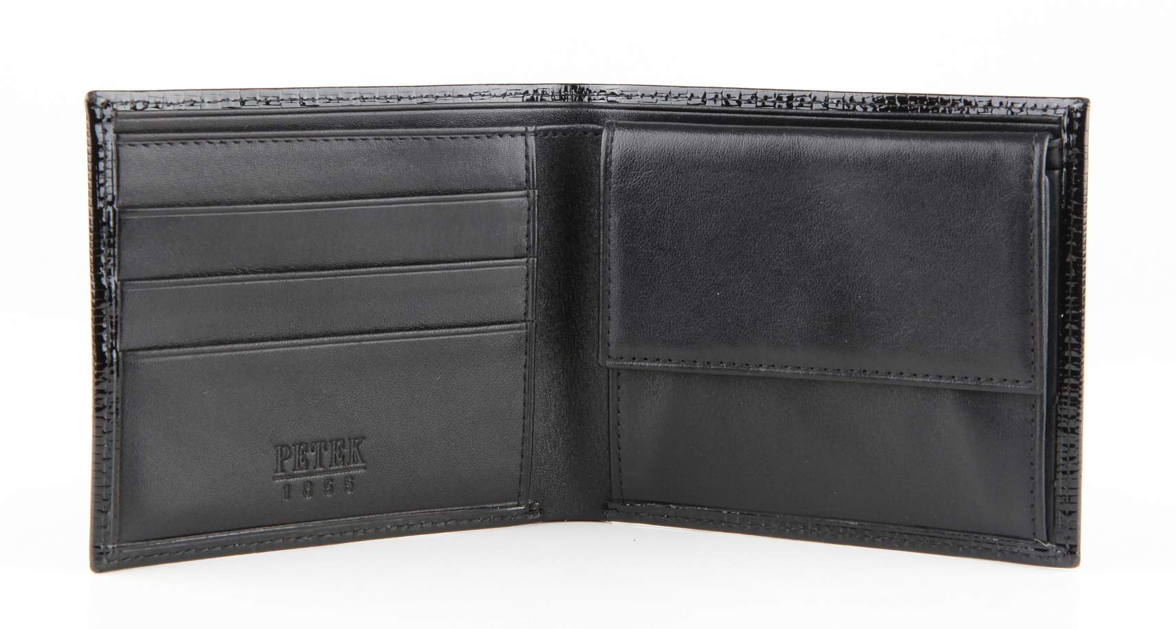 Портмоне Petek - это классический мужской аксессуар, который станет незаменимым помощником в повседневной жизни. Оно выполнено из высококачественной натуральной кожи, что придает ему элегантный и стильный вид. Портмоне имеет двойное сложение, что позволяет удобно хранить деньги, пластиковые карты и монеты. Внутри есть 2 отделения для денег, 3 отсека для карт и монетница на кнопке, что делает его очень практичным и удобным в использовании.