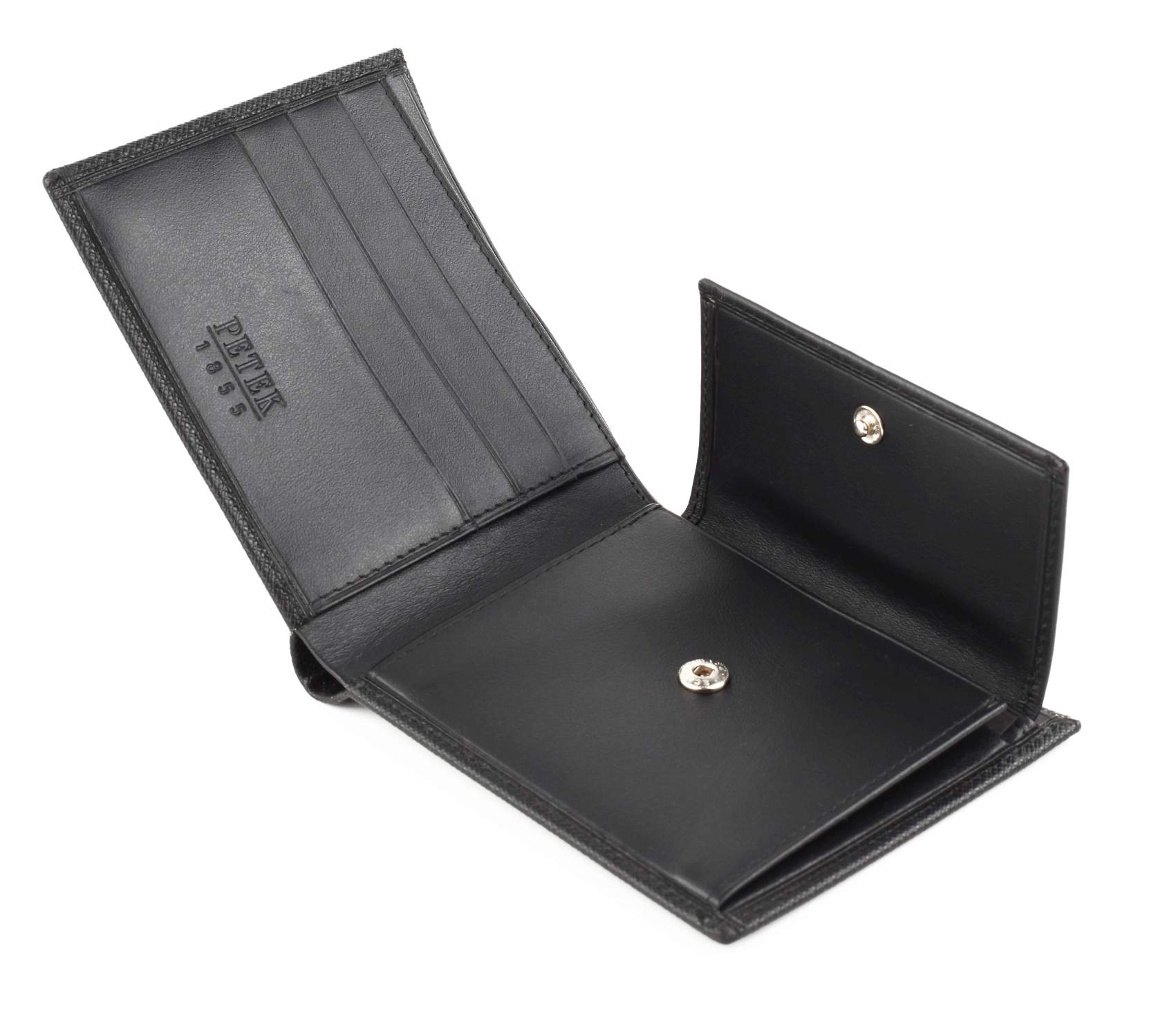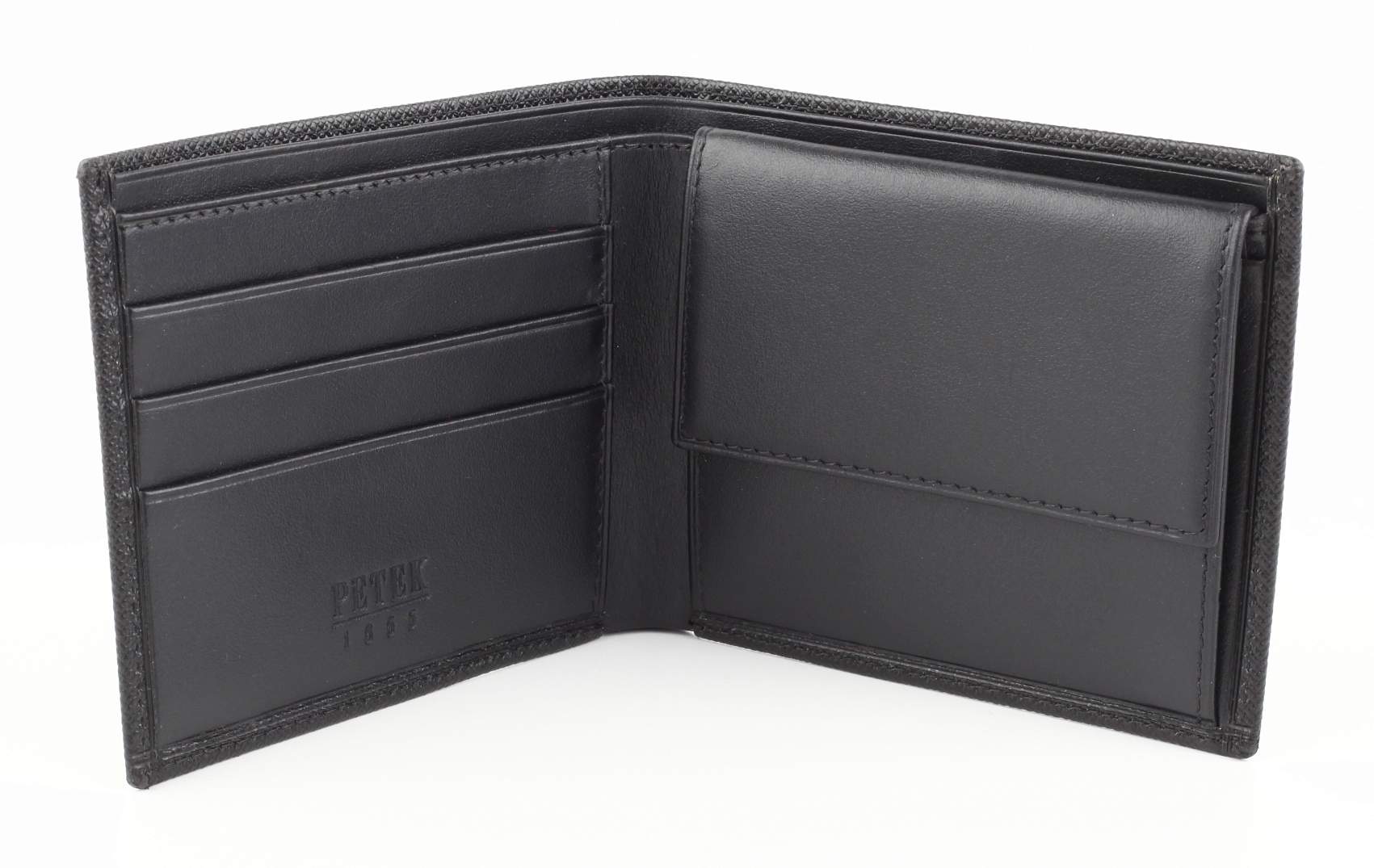 Портмоне Petek - это классический мужской аксессуар, который станет незаменимым помощником в повседневной жизни. Оно выполнено из высококачественной натуральной кожи, что придает ему элегантный и стильный вид. Портмоне имеет двойное сложение, что позволяет удобно хранить деньги, пластиковые карты и монеты. Внутри есть 2 отделения для денег, 3 отсека для карт и монетница на кнопке, что делает его очень практичным и удобным в использовании.