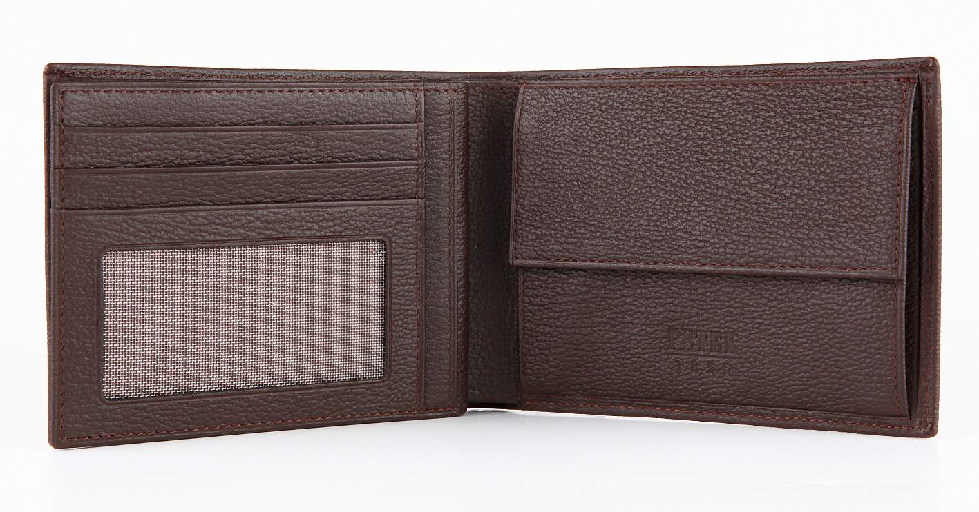 Портмоне Petek - это классический аксессуар для мужчин, который станет незаменимым помощником в повседневной жизни. Портмоне выполнено из натуральной кожи высокого качества, что обеспечивает долговечность и прочность изделия. Внутри портмоне имеется 2 отделения для купюр, 3 отсека для пластиковых карт или визиток, монетница на кнопке и потайной карман. Также на разворотной части портмоне есть два сетчатых кармана. Petek предлагает широкий выбор портмоне для мужчин разных стилей и цветов, чтобы каждый мог выбрать подходящий вариант для себя.