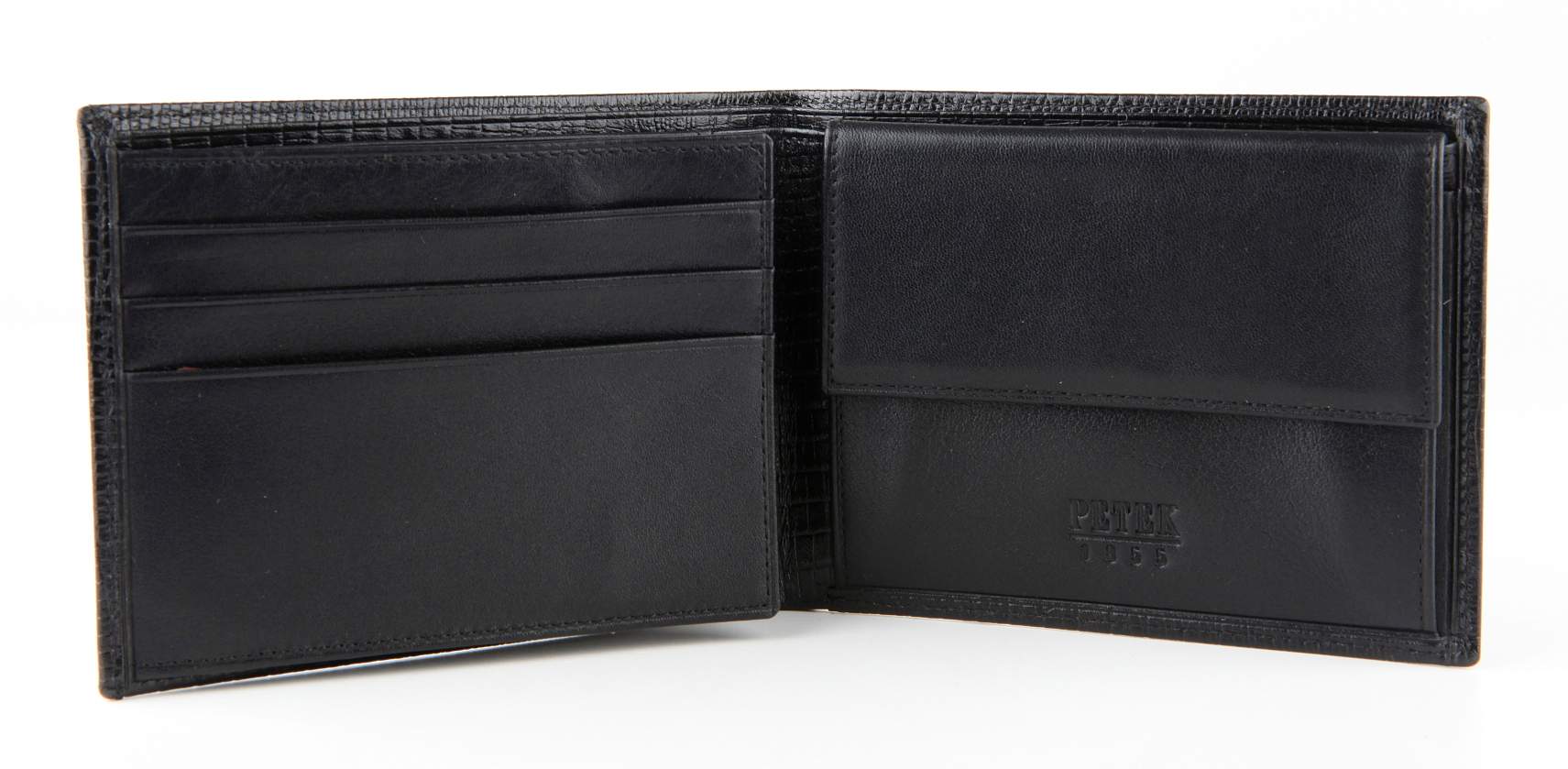 Мужское компактное портмоне Petek, изготовленное из натуральной кожи, станет незаменимым аксессуаром для хранения денег и кредитных карт. Внутри портмоне имеет 2 отделения для купюр, 3 отделения для карт и отделение для монет, которое закрывается на кнопку. Кроме того, внутри есть 2 сетчатых кармана для мелких предметов. Портмоне имеет компактный размер и удобно помещается в кармане или сумке. Оно выполнено в классическом стиле и подойдет для деловых мужчин, которые ценят стиль и удобство.