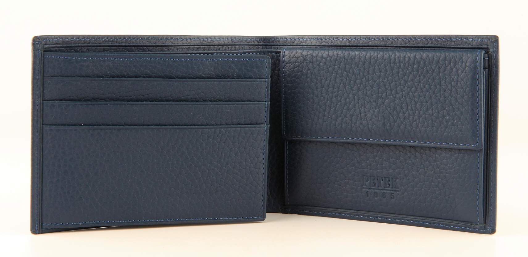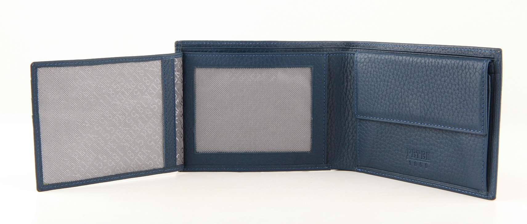 Мужское компактное классическое портмоне Petek из натуральной кожи. Внутри: 2 отделения для купюр, 3 отделения для кредиток, отделение для монет, 2 отделения -сеточки
