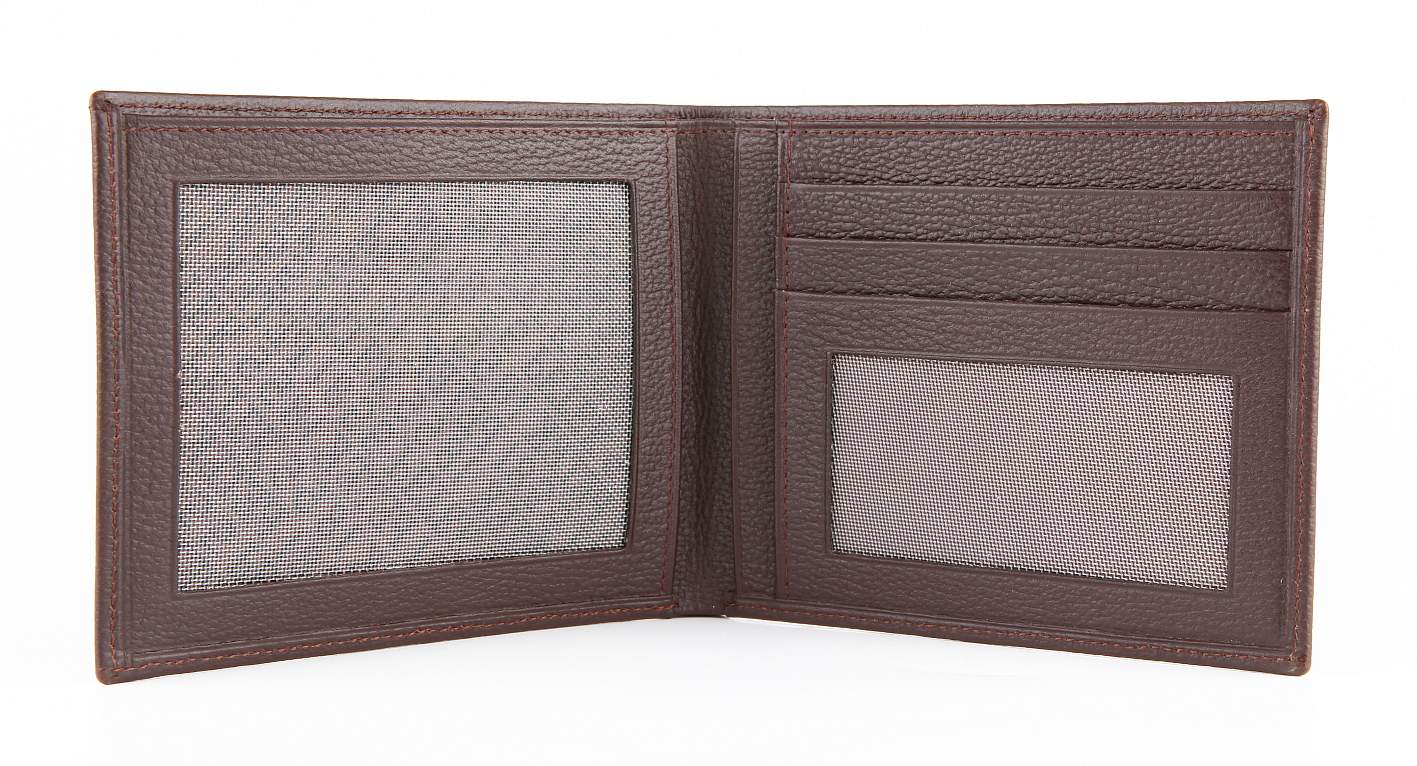 Тонкое и элегантное мужское портмоне-раскладушка из натуральной кожи. Изысканная классическая модель. Легко поместится в нагрудный карман пиджака. Внутри имеются два отделения для купюр, два кармана-окошка из прозрачной черной сетки и два прорезных кармашка для пластиковых карточек или визиток.