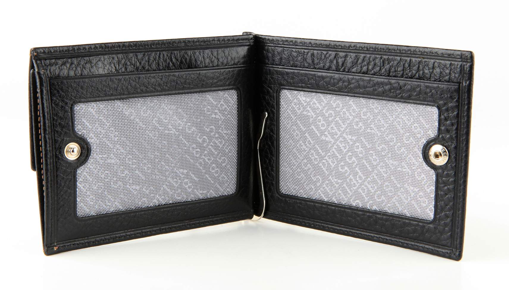 Мужской компактный и стильный зажим для купюр Petek из натуральной кожи . Внутри два окошка-сеточки (7х10 см), снаружи отделение для мелочи.